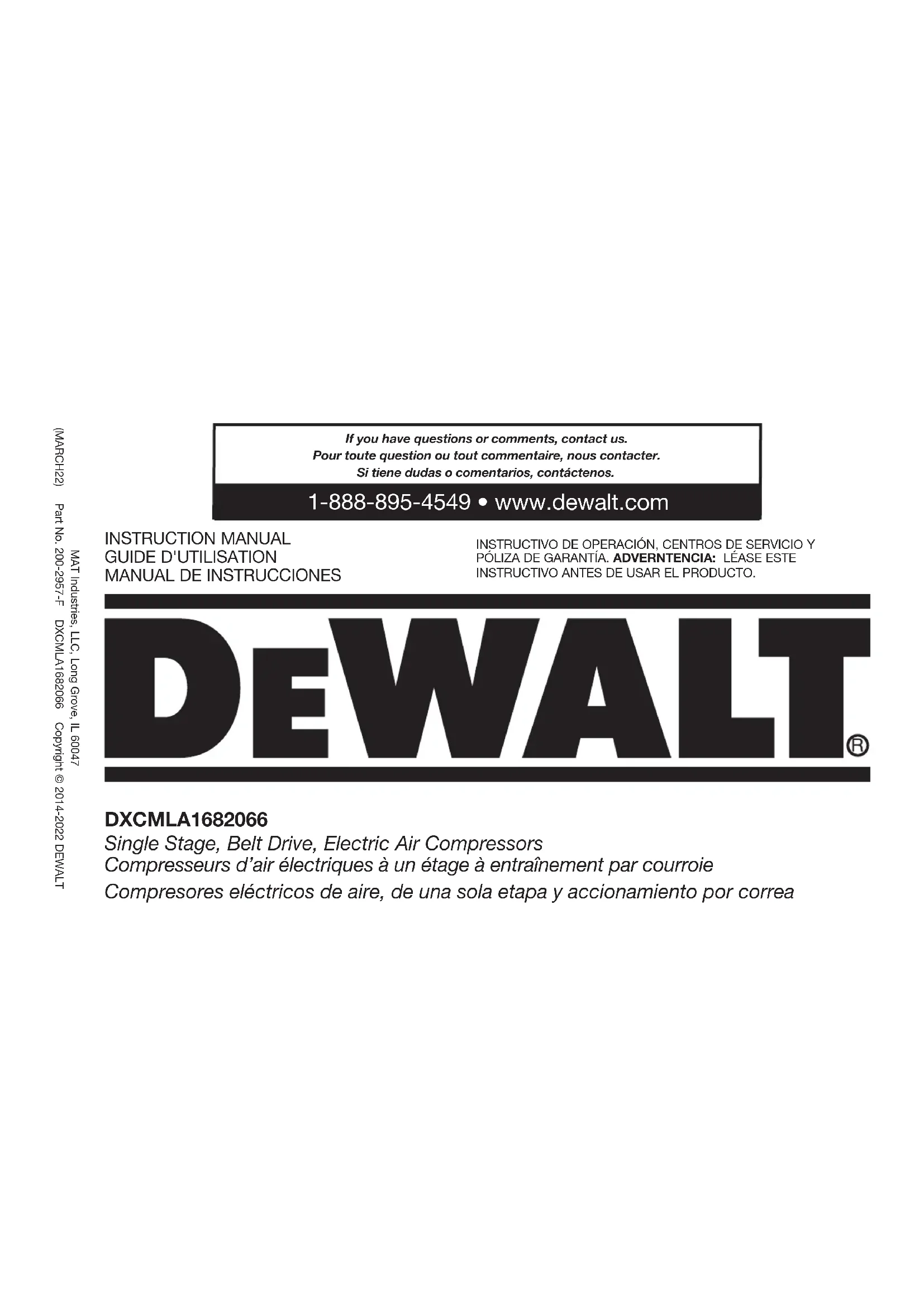 DXCMLA1682066 - Compresseur DEWALT - Notice d'utilisation et mode d'emploi gratuit