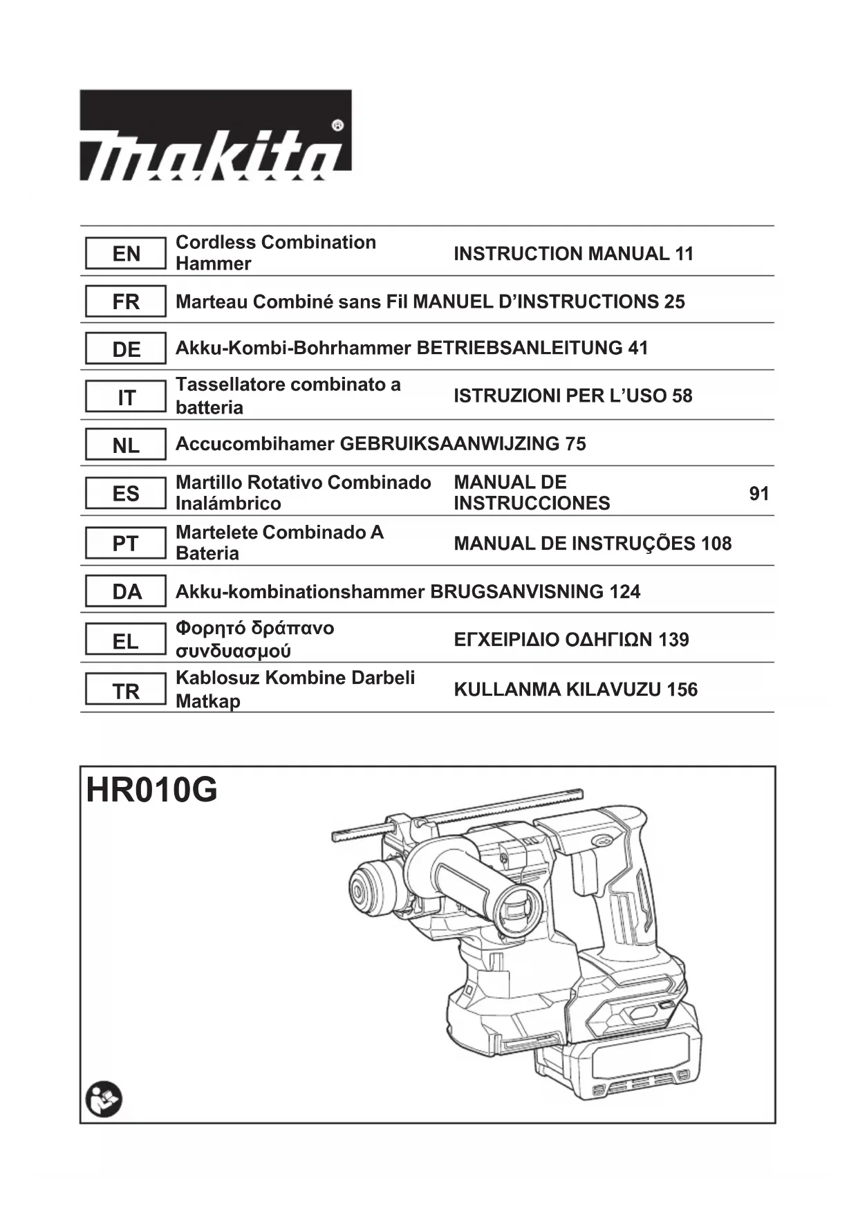 HR010G - Perceuse MAKITA - Notice d'utilisation et mode d'emploi gratuit