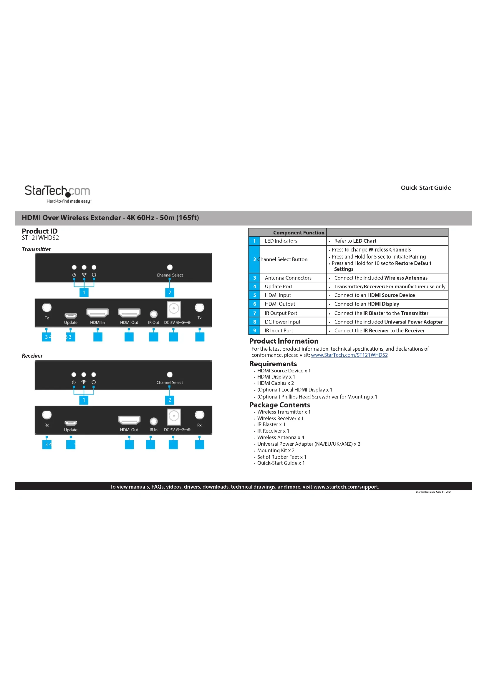 ST121WHDS2 - Extension audio/video StarTech.com - Notice d'utilisation et mode d'emploi gratuit