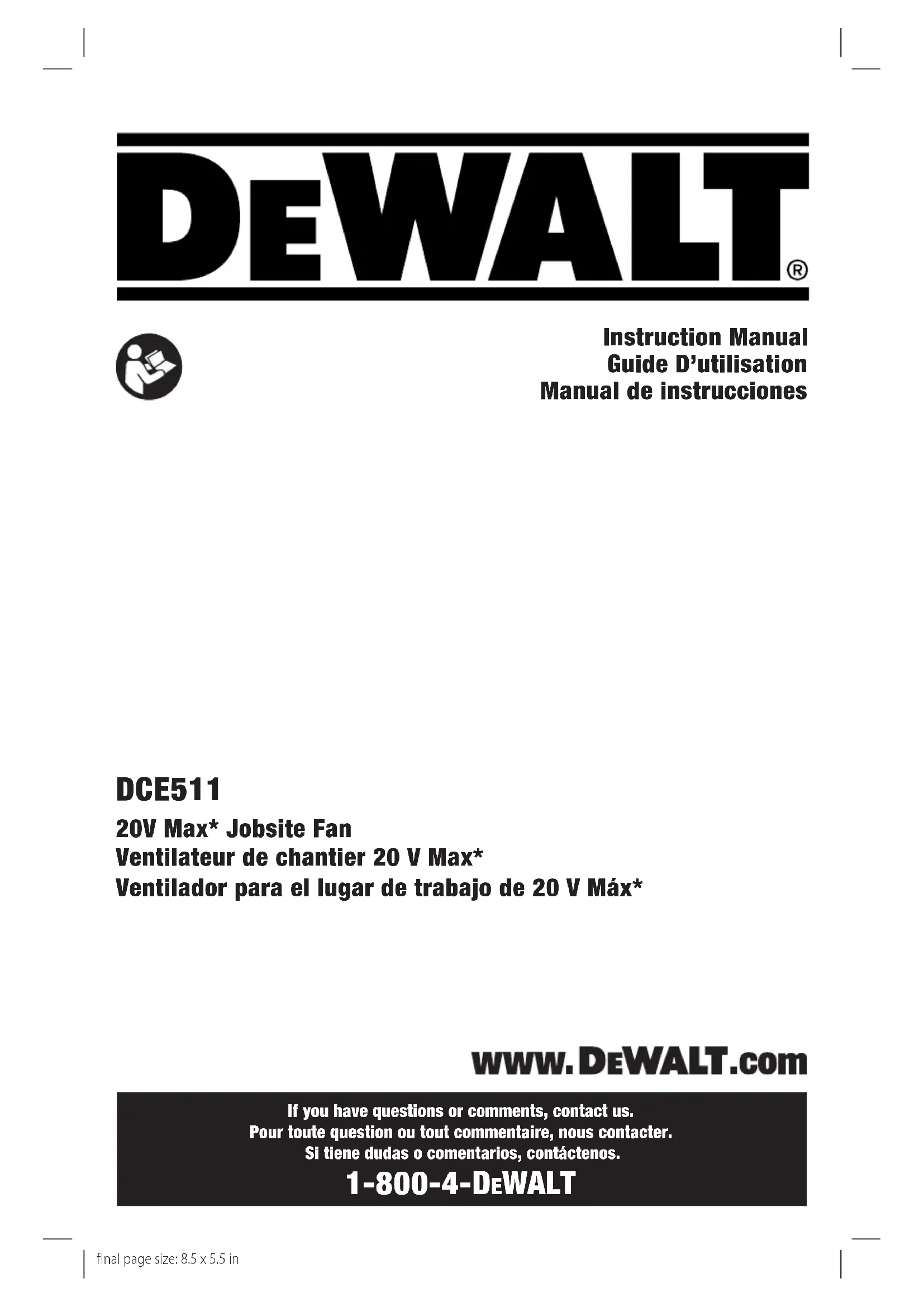 blessures, lire le mode d’emploi del’outil. Pour toute question ou remarque au sujet de cet outil ou de tout autre outil DeWALT , composez le numéro sans frais : 1-800-4- DeWALT (1-800-433-9258).