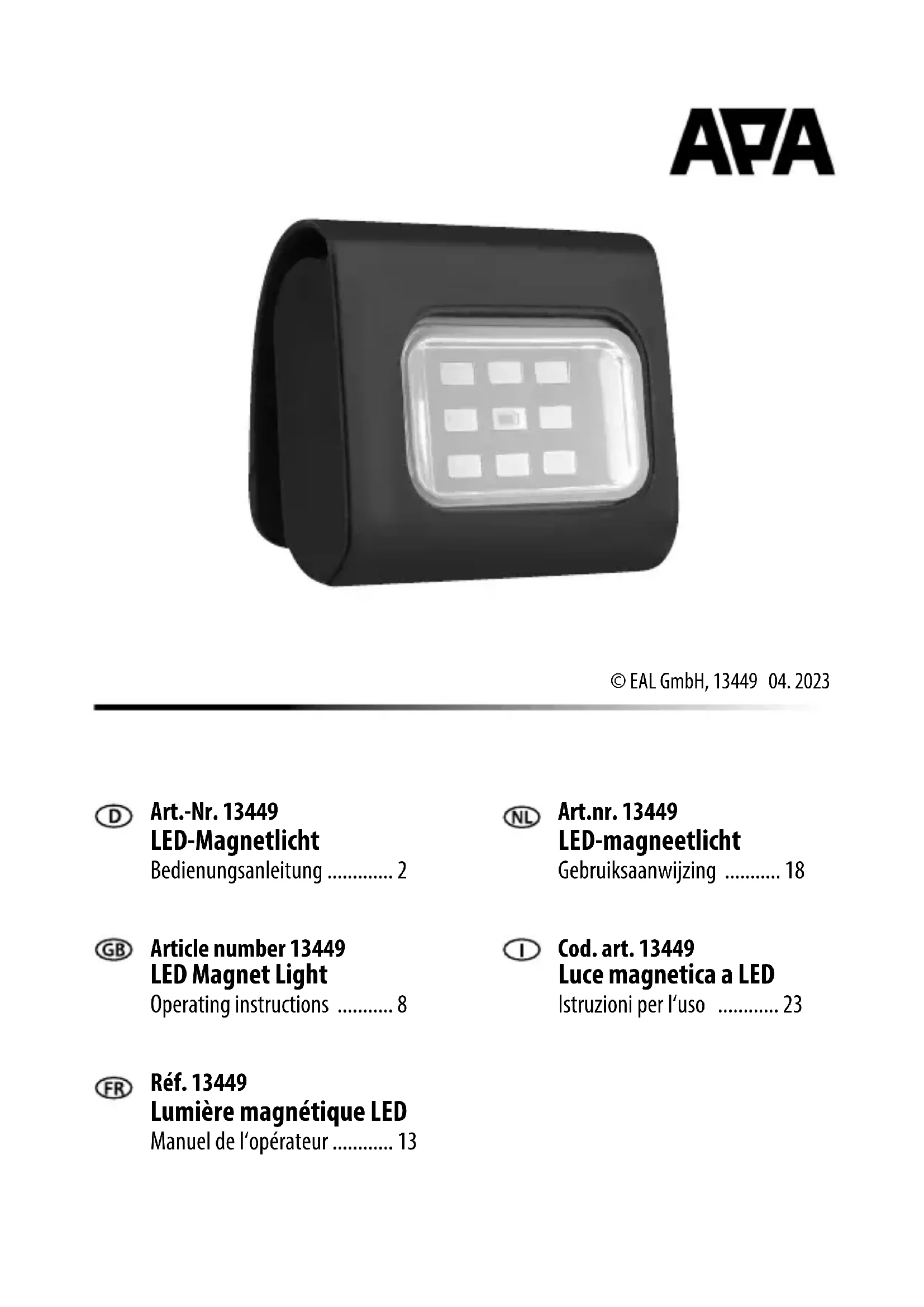 13499 - Lampe APA - Notice d'utilisation et mode d'emploi gratuit