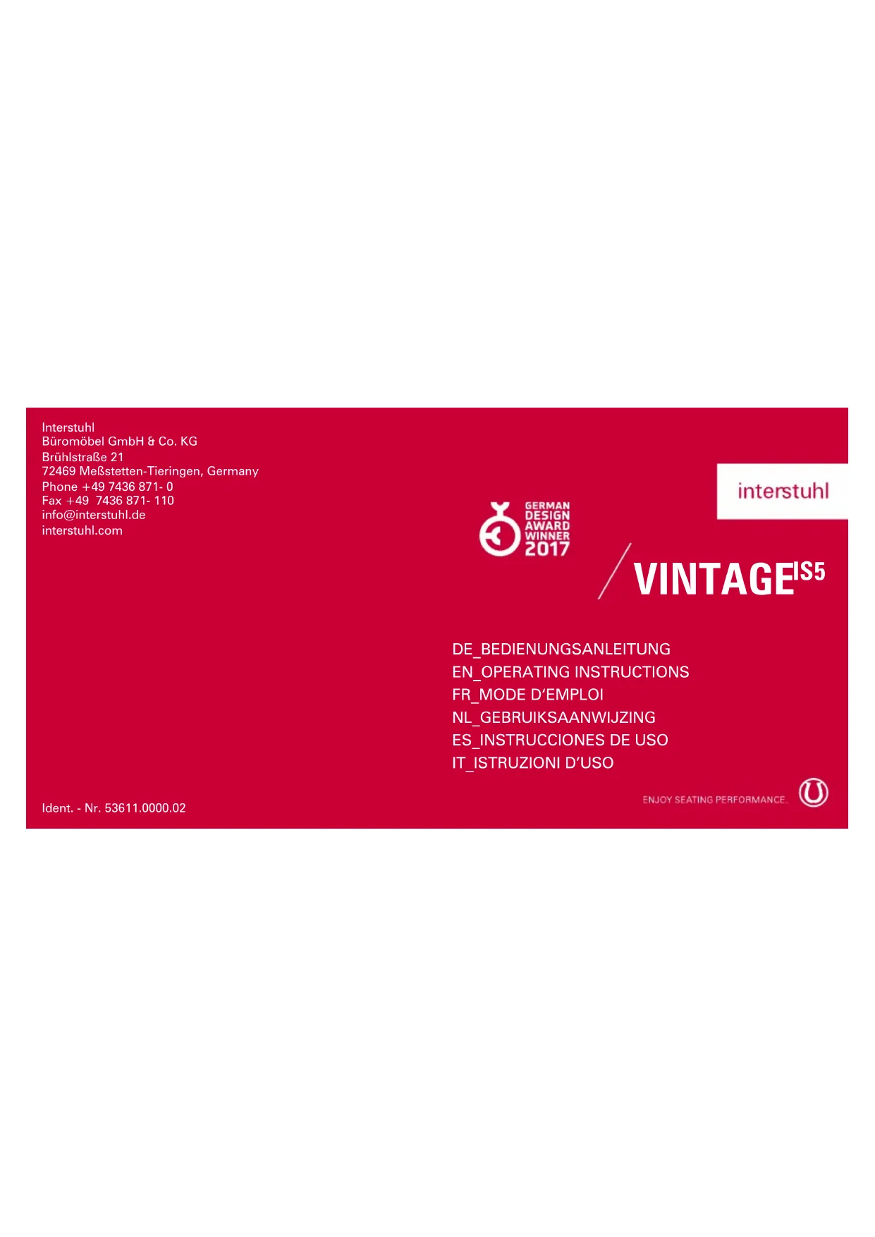 Retrouvez gratuitement la notice de l'appareil VINTAGEis5 17V7 Interstuhl au format PDF.