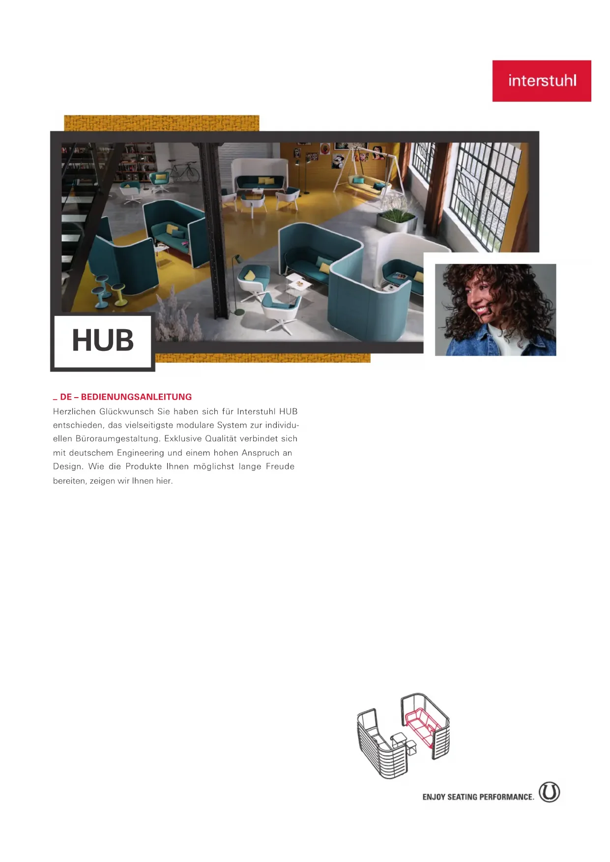 Félicitations, vous avez choisi HUB Interstuhl, le système modulaire le plus polyvalent pour l‘aménagement individuel des bureaux. Bénéficiez ainsi d‘une qualité exclusive associée à l‘ingénierie allemande et à un niveau de design élevé.Décou- vrez ici comment nos produits vous apporteront satisfaction le plus longtemps possible.18
