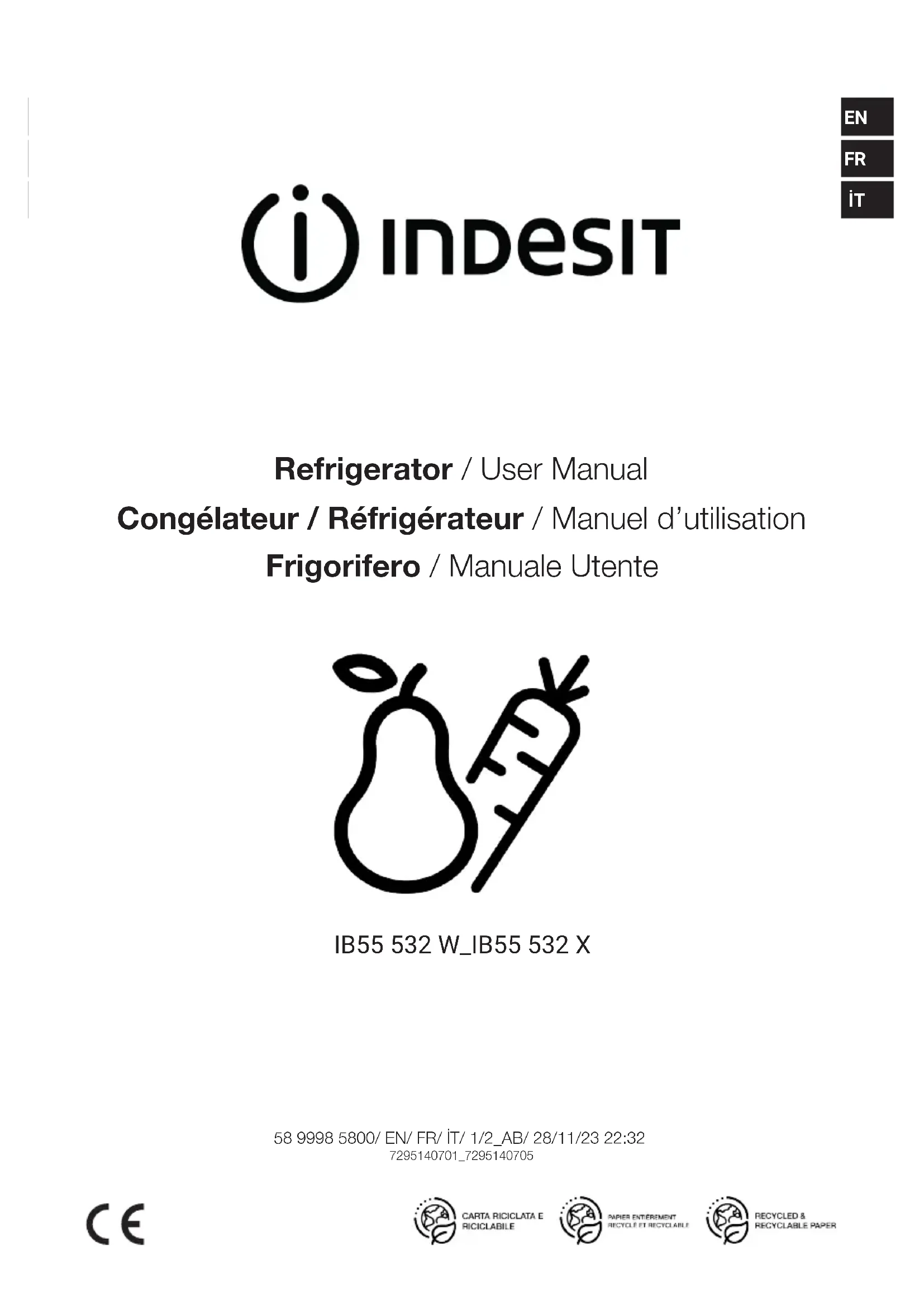 IB55 532 W - Congélateur INDESIT - Notice d'utilisation et mode d'emploi gratuit