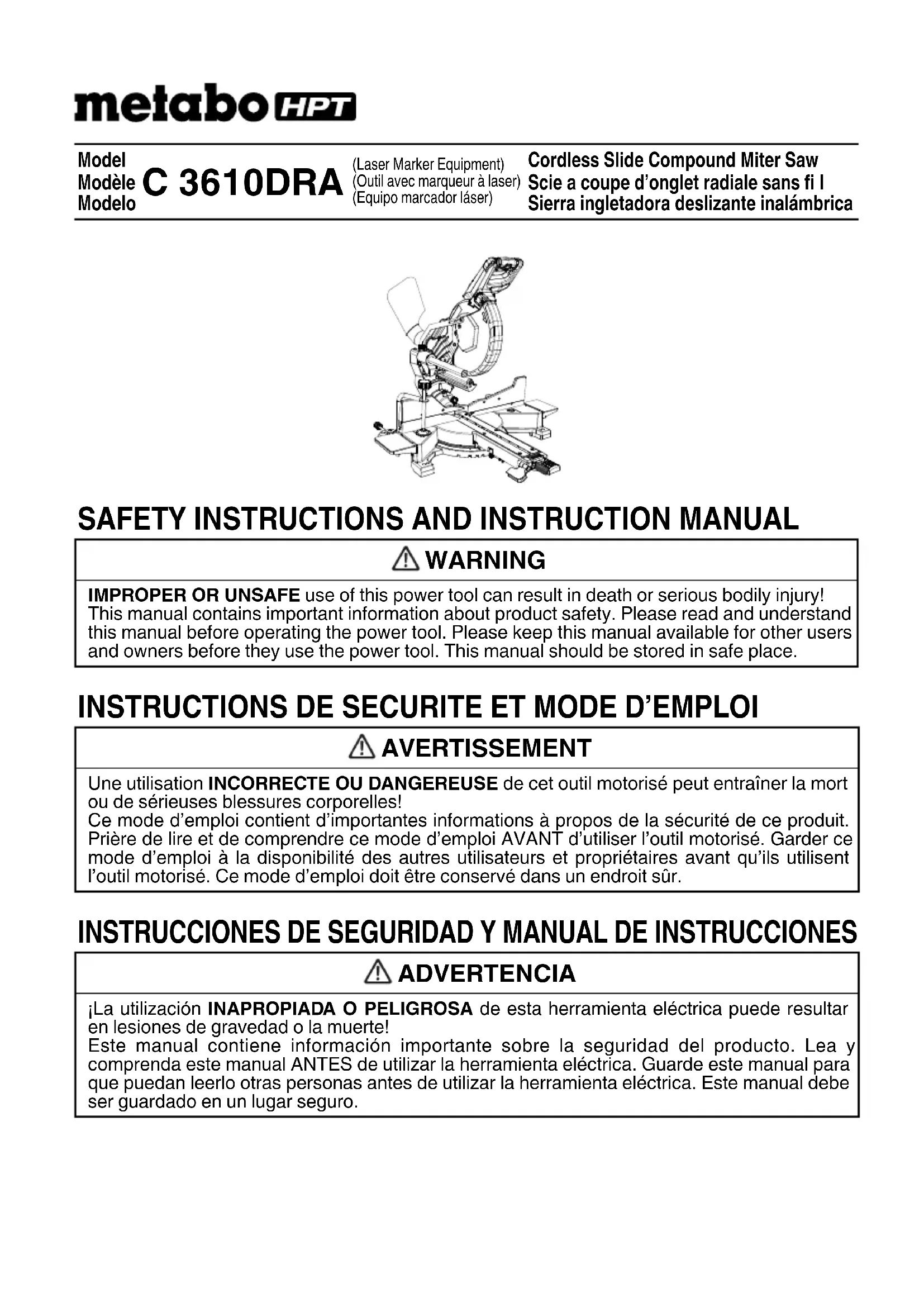 C 3610DRA - Scie METABO - Notice d'utilisation et mode d'emploi gratuit