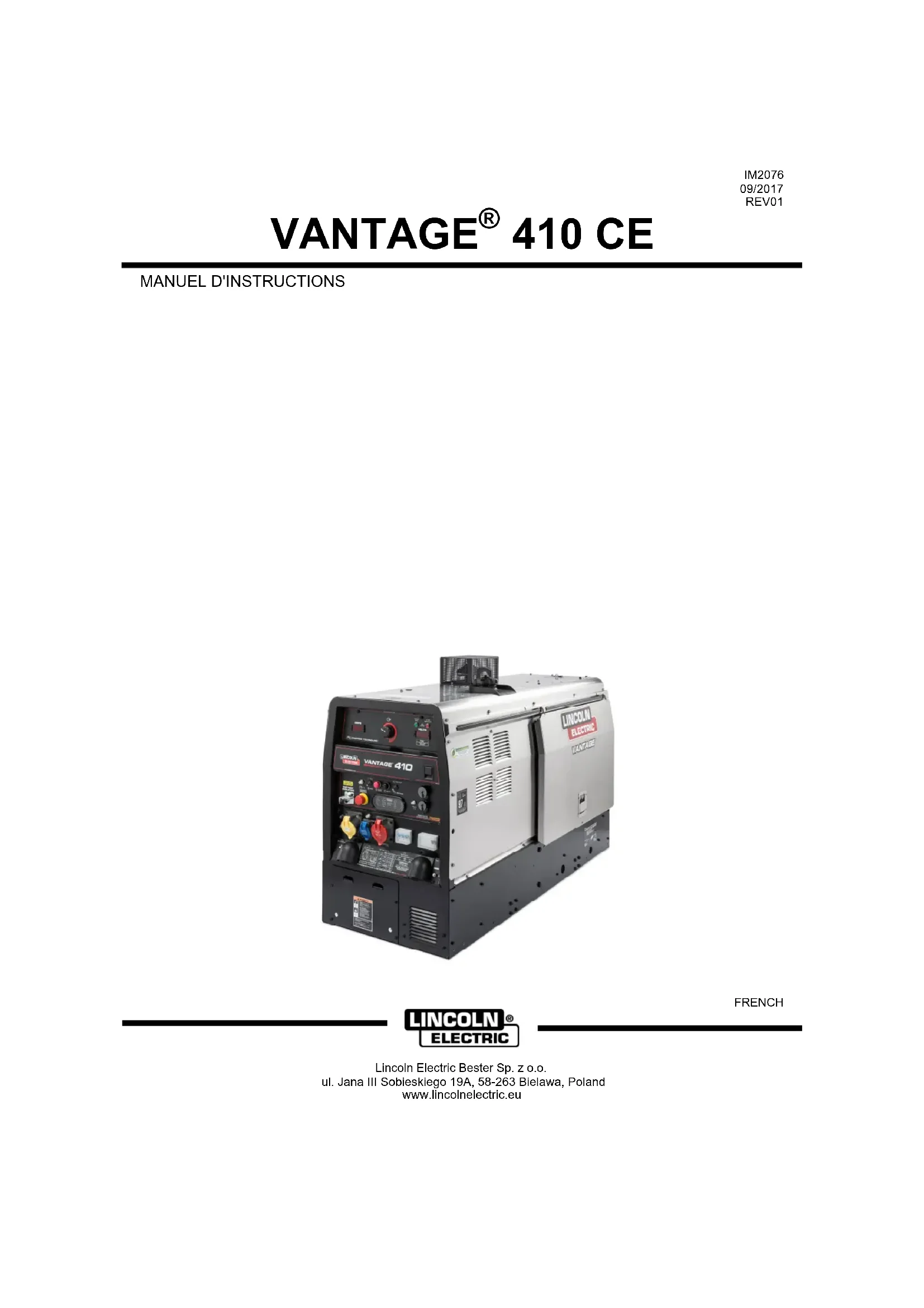 Retrouvez gratuitement la notice de l'appareil Vantage 410 CE LINCOLN ELECTRIC au format PDF.