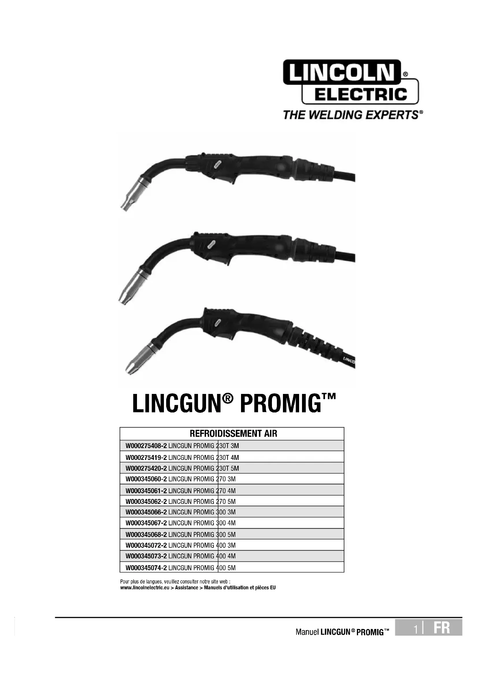 Pour plus de langues, veuillez consulter notre site web:www.lincolnelectric.eu > Assistance > Manuels d'utilisation et pièces EUFR