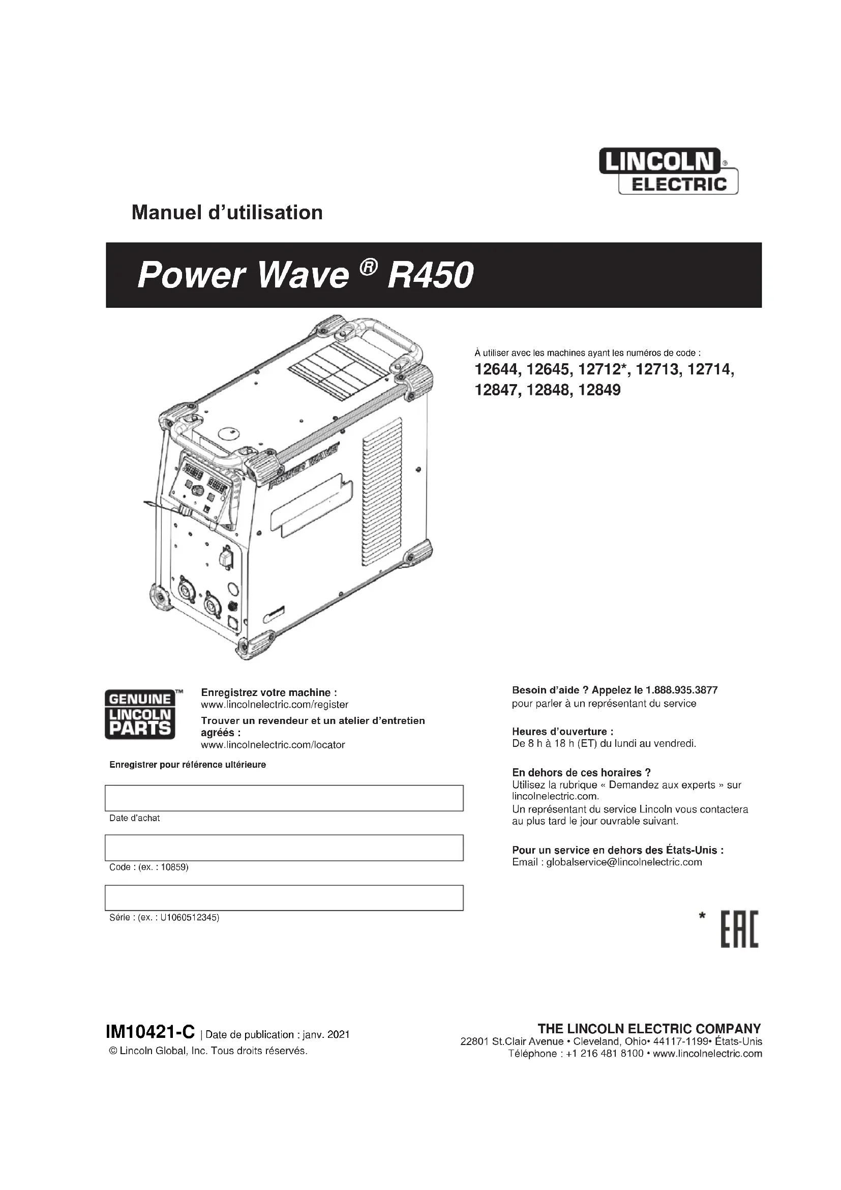 IM10421-C | Date de publication : janv. 2021 © Lincoln Global, Inc. Tous droits réservés.