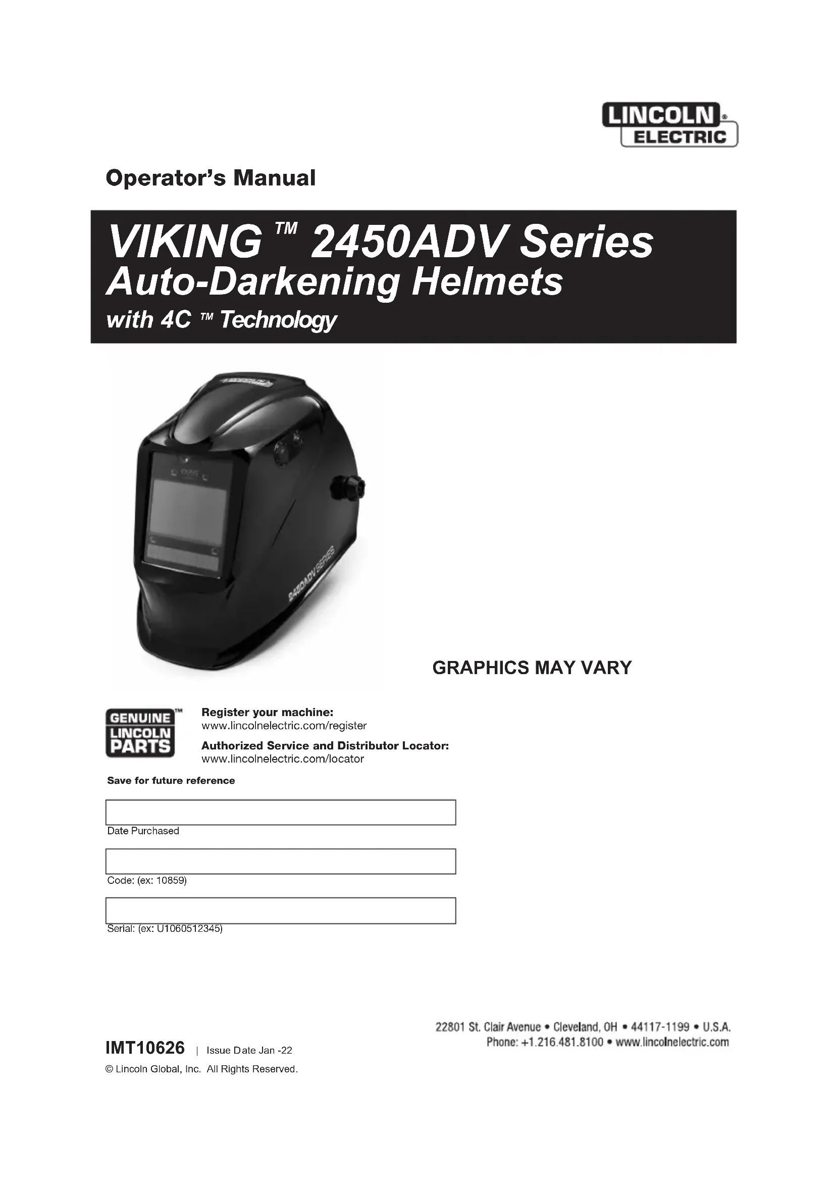 Retrouvez gratuitement la notice de l'appareil VIKING 2450 ADV LINCOLN ELECTRIC au format PDF.