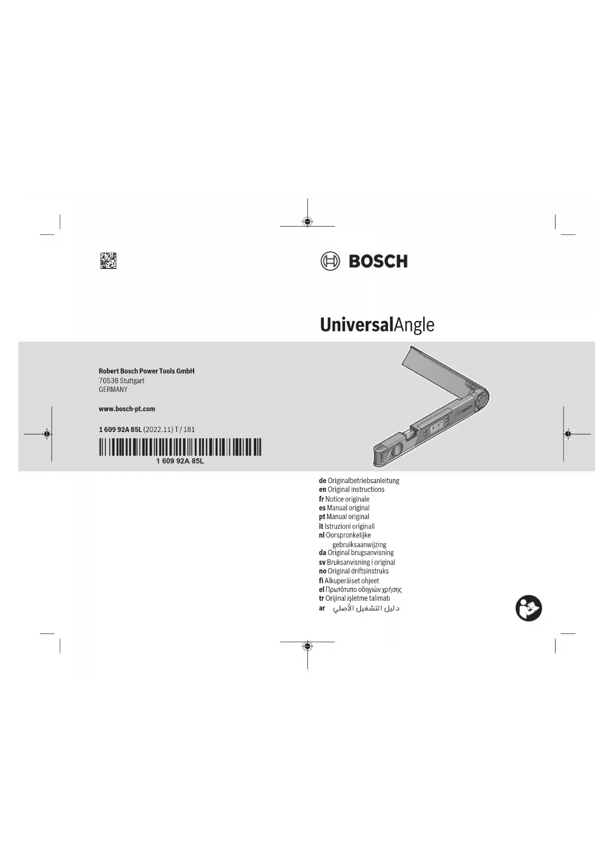 Retrouvez gratuitement la notice de l'appareil UniversalAngle BOSCH au format PDF.