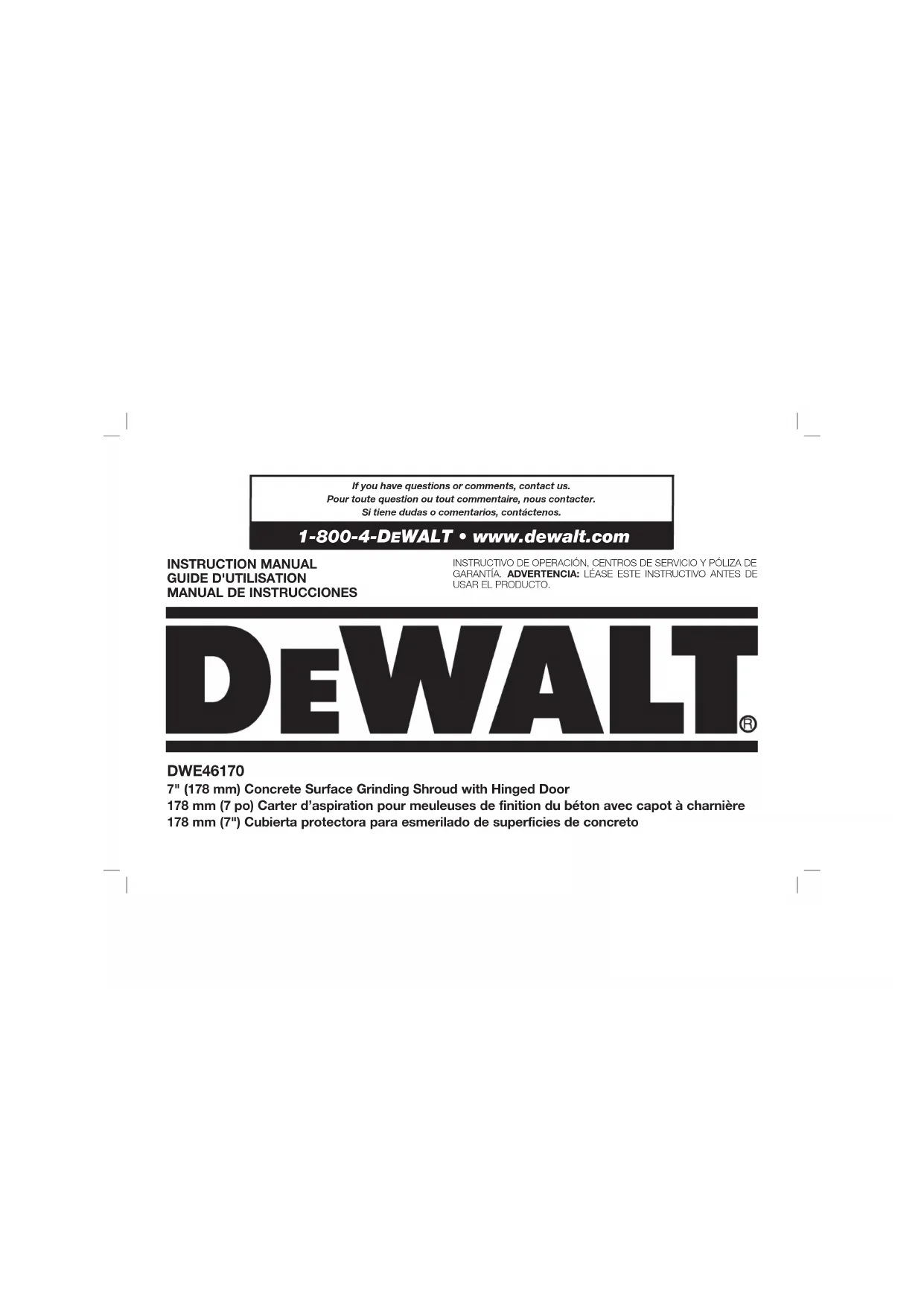 Retrouvez gratuitement la notice de l'appareil DWE46170 DEWALT au format PDF.