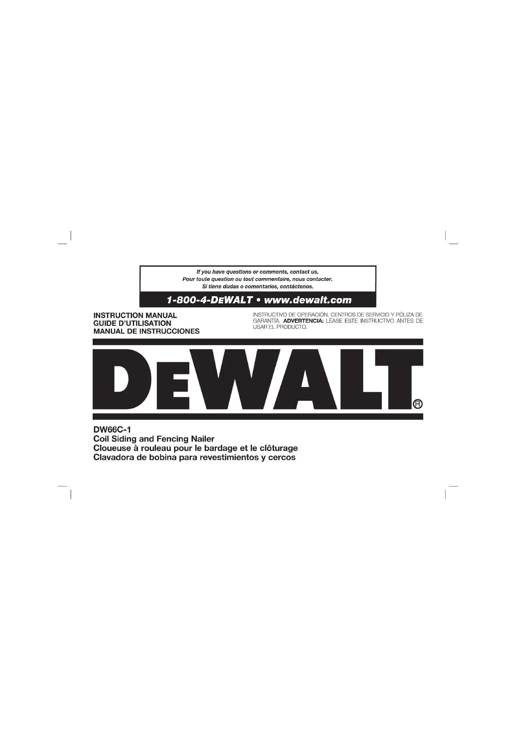 DW66C-1 Coil Siding and Fencing Nailer Cloueuse à rouleau pour le bardage et le clôturage Clavadora de bobina para revestimientos y cercos INSTRUCTION MANUAL