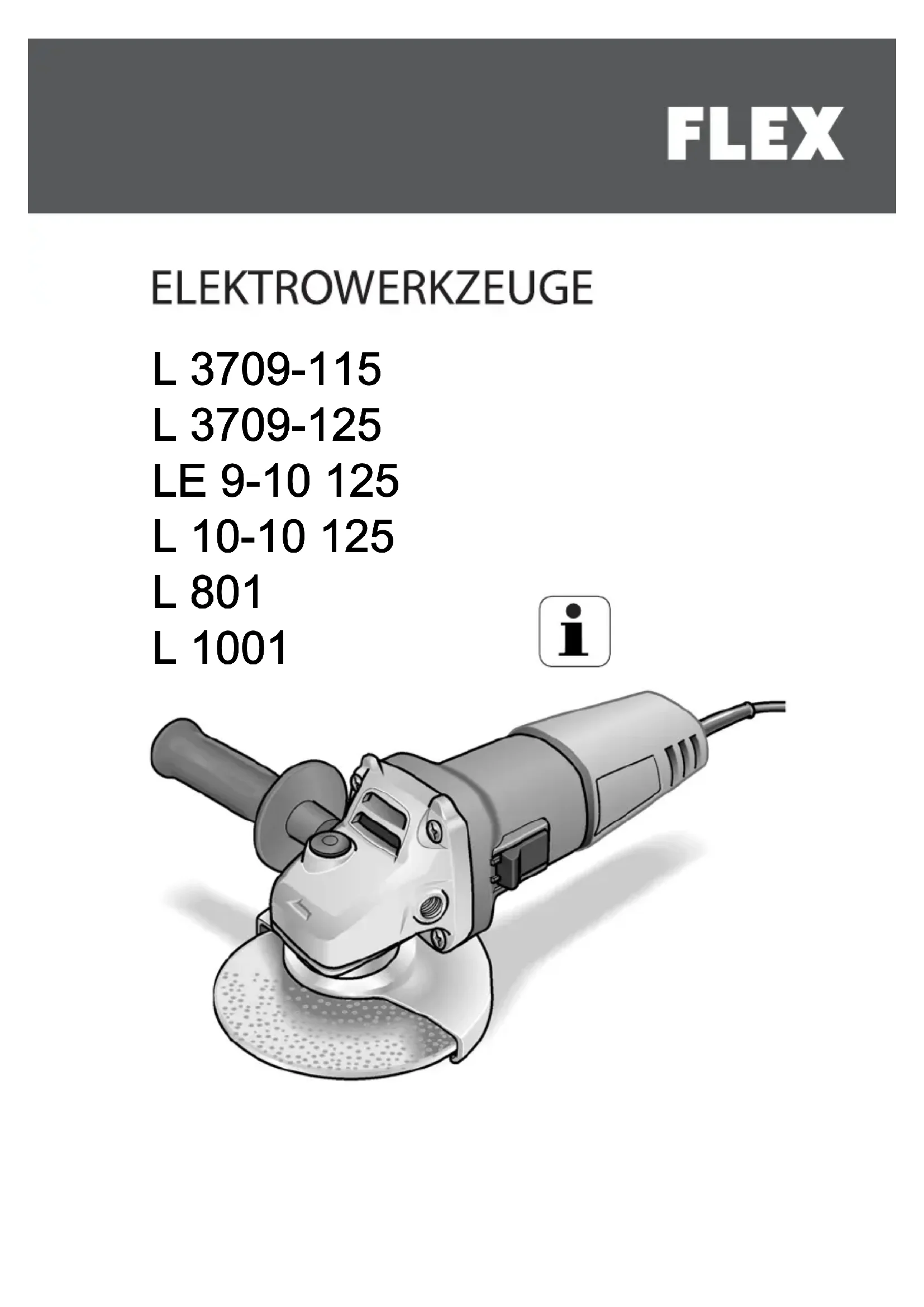 dans un état technique et de sécurité parfait. Supprimez immédiatement tout dérangement susceptible de compromettre la sécurité. Conformité d’utilisation Cette meuleuse d’angle est destinée – aux utilisations professionnelles dans l’industrie et l’artisanat, – à meuler et sectionner du métal et de la pierre par meulage à sec, – pour tronçonner, il faut utiliser un capot protecteur spécial, – à servir équipée d’un outil de meulage et des accessoires indiqués dans la présente notice ou recommandés par le fabricant et homologués pour supporter une vitesse circonférentielle de 80 m/s. Le montage de meules de fraisage à chaîne et de lames de scie est interdit.L 3709 -115, L 3709 -125, LE 9-10 125, L 10-10 125, L 801, L 1001