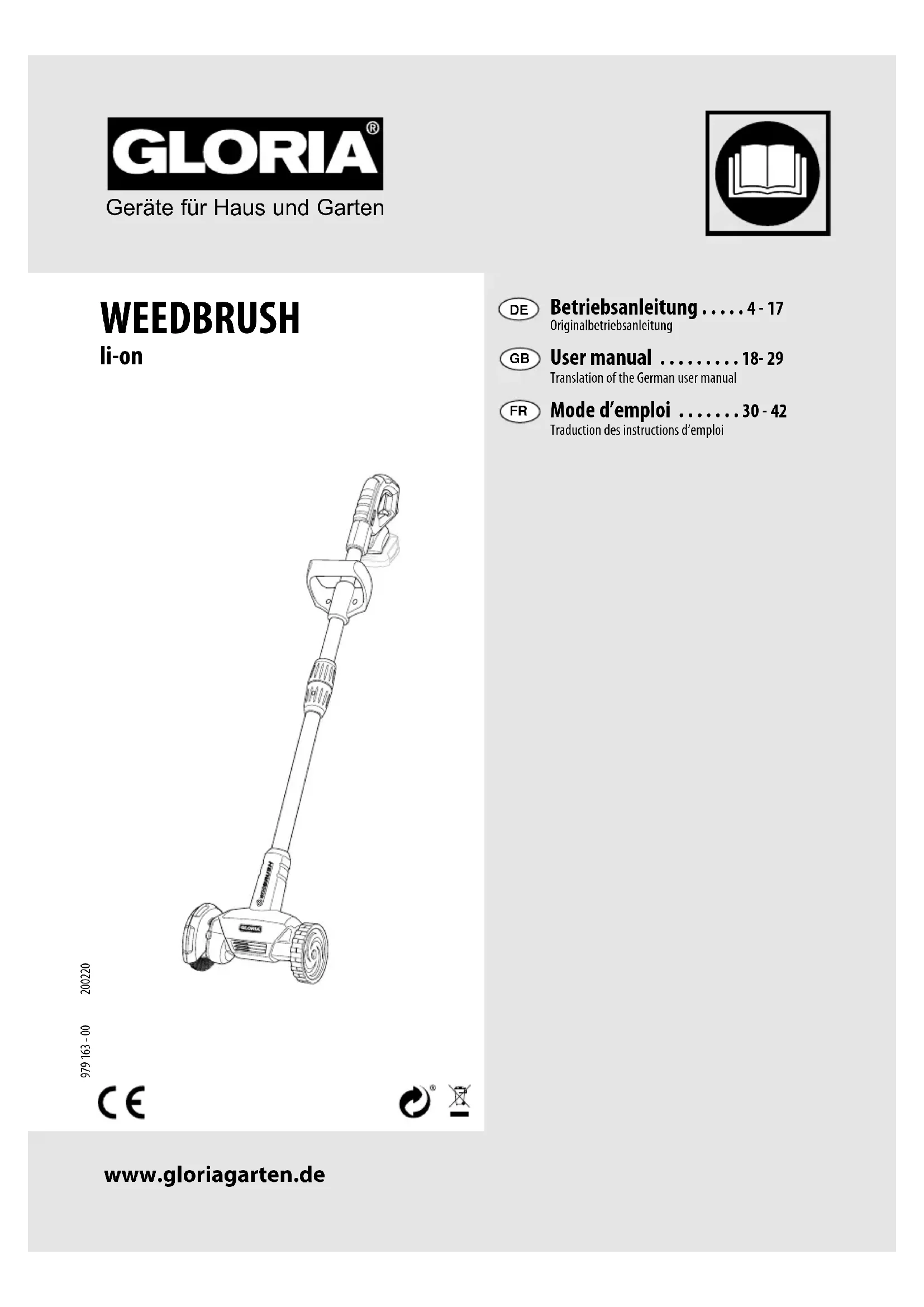 WeedBrush li-on - Tondeuse à gazon GLORIA - Notice d'utilisation et mode d'emploi gratuit