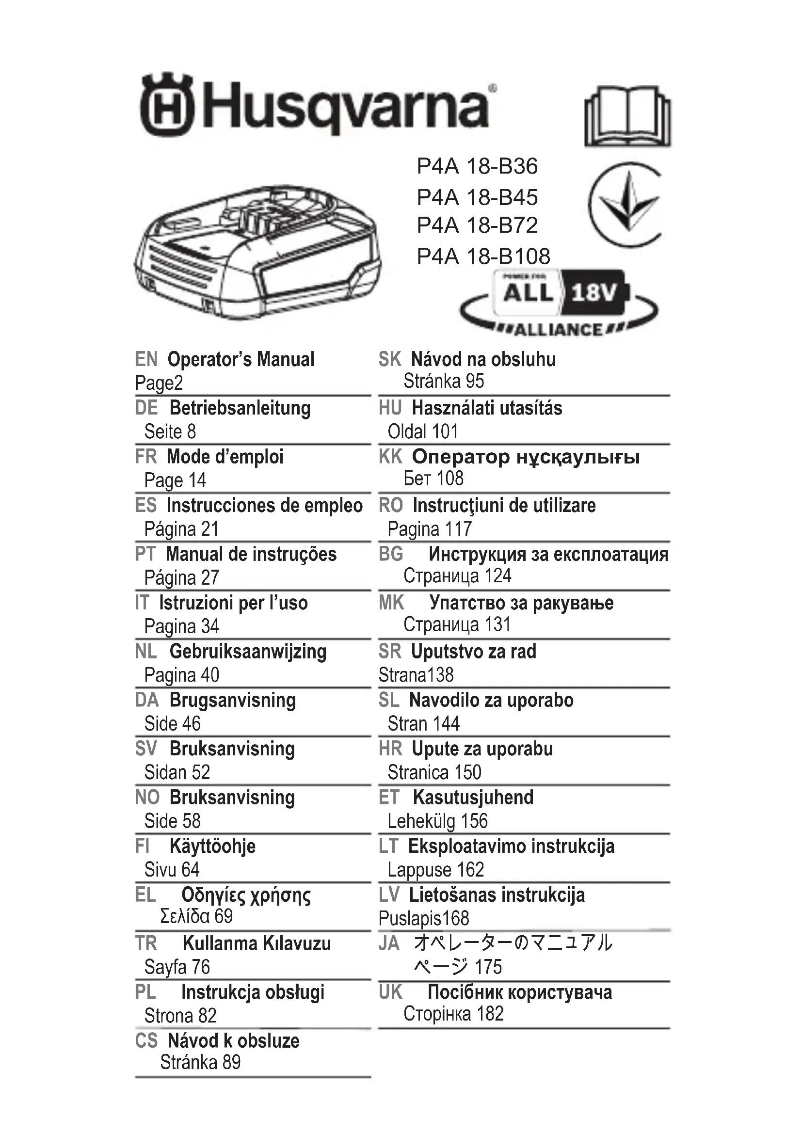 Aspire P4A 18-B36 - Non catégorisé HUSQVARNA - Notice d'utilisation et mode d'emploi gratuit