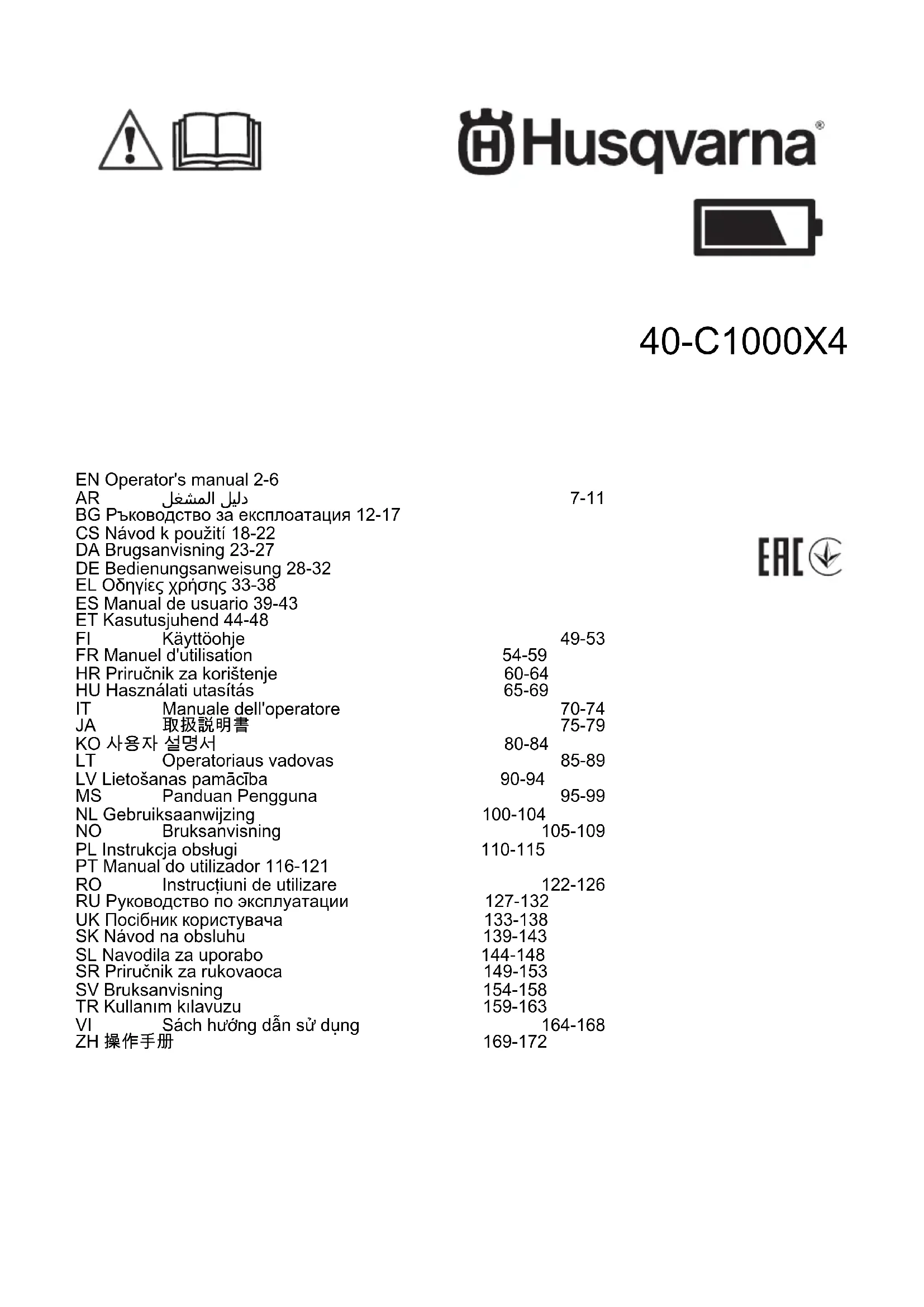 Retrouvez gratuitement la notice de l'appareil 40-C1000X4 HUSQVARNA au format PDF.