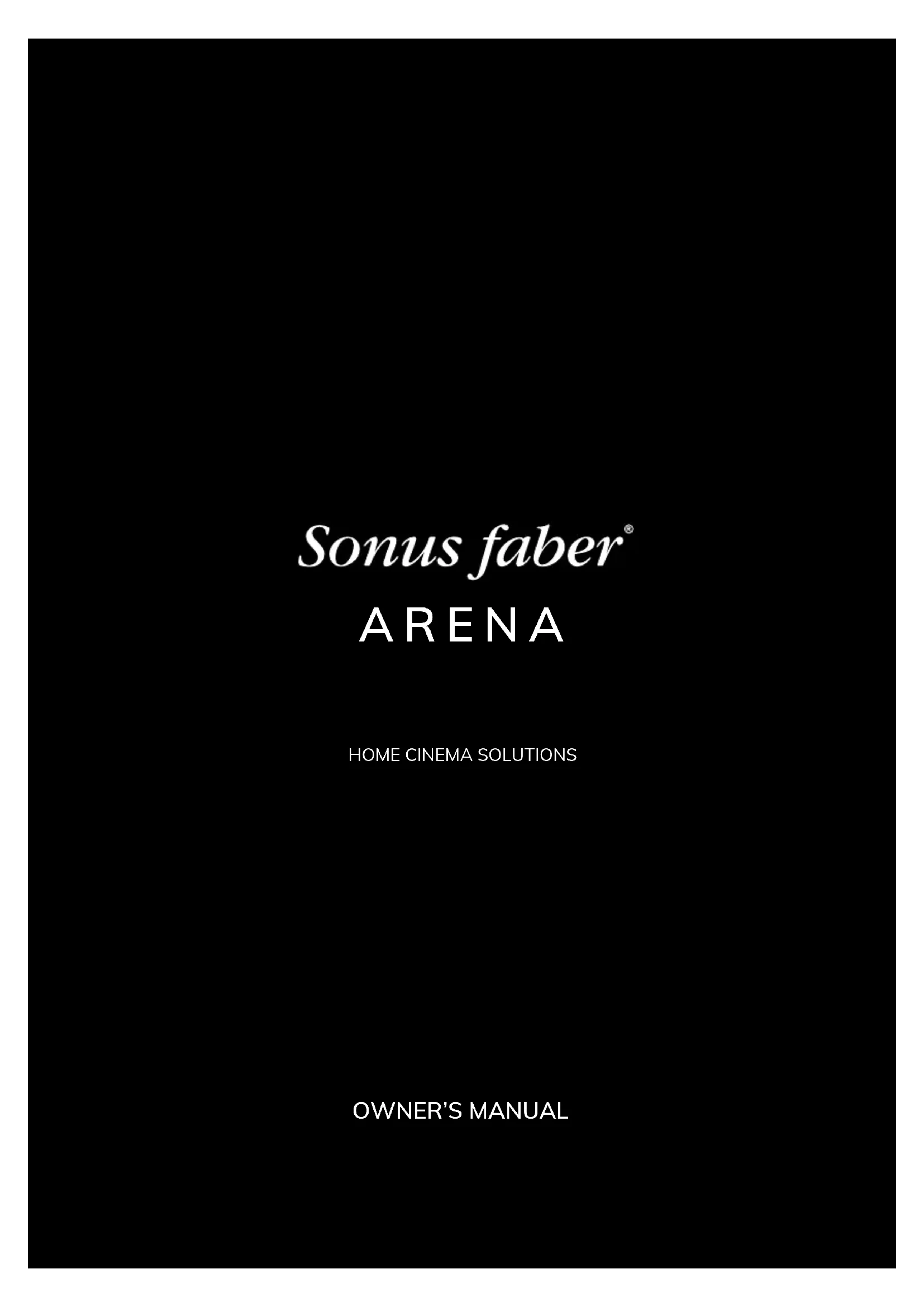 Cher Client, Nous tenons à vous remercier et à vous féliciter d’avoir choisi des enceintes Arena pour votre système audio/audio-vidéo. Sachant que nous avons à cœur que vous obteniez les meilleurs résultats d’écoute possibles en toute sécurité, nous vous invitons à lire attentivement ce manuel d’instructions avant d’installer l’équipement.En cas de doute ou de questions à poser, n’hésitez pas à contacter le service technique de votre point de vente, le distributeur ofciel Sonus faber de votre pays ou prenez directement contact avec le service après-vente de Sonus faber, en écrivant à l’adresse suivante customerservice@sonusfaber.com. Enn, nous vous suggérons vivement de vous enregistrer en ligne sur le site www.sonusfaber.com: ainsi, vous serez informés par Sonus faber de toutes les nouveautés, initiatives et éventuelles promotions. Bonne Musique!