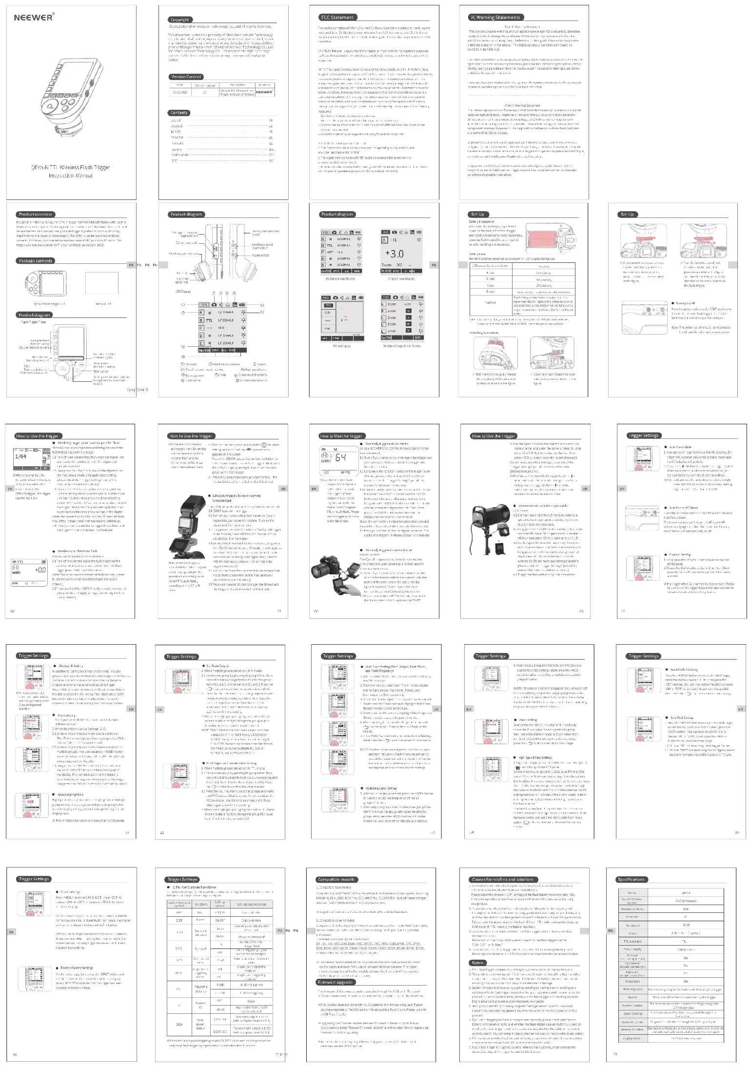 Compatible avec les flashes NEEWER 2,4G avec système de contrôle sans fil Q intégré (NW420-N, Z1-N, S101-300W Pro, S101-400W Pro, Q3, NW655-N, Q-N (déclenchement off-camera), et les modèles de flashes ultérieurs avec contrôle sans fil Q intégré). D'autres nouveaux modèles seront ajoutés à la gamme au fur et a mesure.※ Fonctions prises en charge : toutes les fonctions que le QPro et le flash possèdent. Compatible avec la majorité des appareils photo de marque Nikon (mode TTL, M, Multi flash), et fonctionne également avec d'autres modèles d'appareils photo. Il suffit de connecter le déclencheur à l'entrée PC (en mode M uniquement).La liste de modèles compatibles que nous avons testé inclut : D4 、D5、 D60、D70S、D90、D100、D200、D300S、D300、D500、D610、D700、D750、D780、 D800、D810、D850、D3100、D3200、D3300、D3400、D3500、D5000、D5100、D5200 D5300、D5600、D7000、D7100、D7200、D7500、Z5、Z6、Z6ii ※ La liste des modèles d'appareils photo ci-dessus comprend uniquement ceux que nous avons déjà testés en laboratoire sur le déclencheur et ne comprend pas tous les appareils photo Nikon compatibles. Il est possible que le déclencheur soit compatible avec d'autres modèles et la liste de modèles compatibles sera mise à jour en fonction des retours reçus de la part des utilisateurs. Mise à jour du micrologiciel Le micrologiciel de ce produit peut être mis à jour à l'aide du port USB. Les dernières annonces et instructions relatives aux mises à jour seront publiées sur le site officiel. ※Ce produit n'est pas livré avec un câble USB destiné à la mise à niveau du micrologiciel. Veuillez l'acheter séparément. Le port USB de ce produit est un port de type C. Veuillez utiliser uniquement un câble USB de type C.※La mise à niveau du micrologiciel nécessite le support du micrologiciel de Neewer. Veuillez télécharger et installer le "Neewer Firmware Update", puis sélectionnez le fichier de micrologiciel correspondant avant la mise à jour.※Pendant la mise à jour du micrologiciel, veuillez vous référer à la dernière version électronique du manuel qui sera mise à votre disposition. Dépannage 1.L'interférence du signal 2,4GHz due à l' environnement externe (tel qu'une station de base sans fil, un routeur Wi-Fi 2,4GHz, un dispositif Bluetooth, et autres). Veuillez ajuster les paramètres du canal ("CH") du déclencheur du flash (recommandé +10), afin de trouver un canal sans interférence, ou vous pouvez essayer d'éteindre les autres appareils qui partagent le même signal 2,4GHz pendant l'utilisation de ce produit.