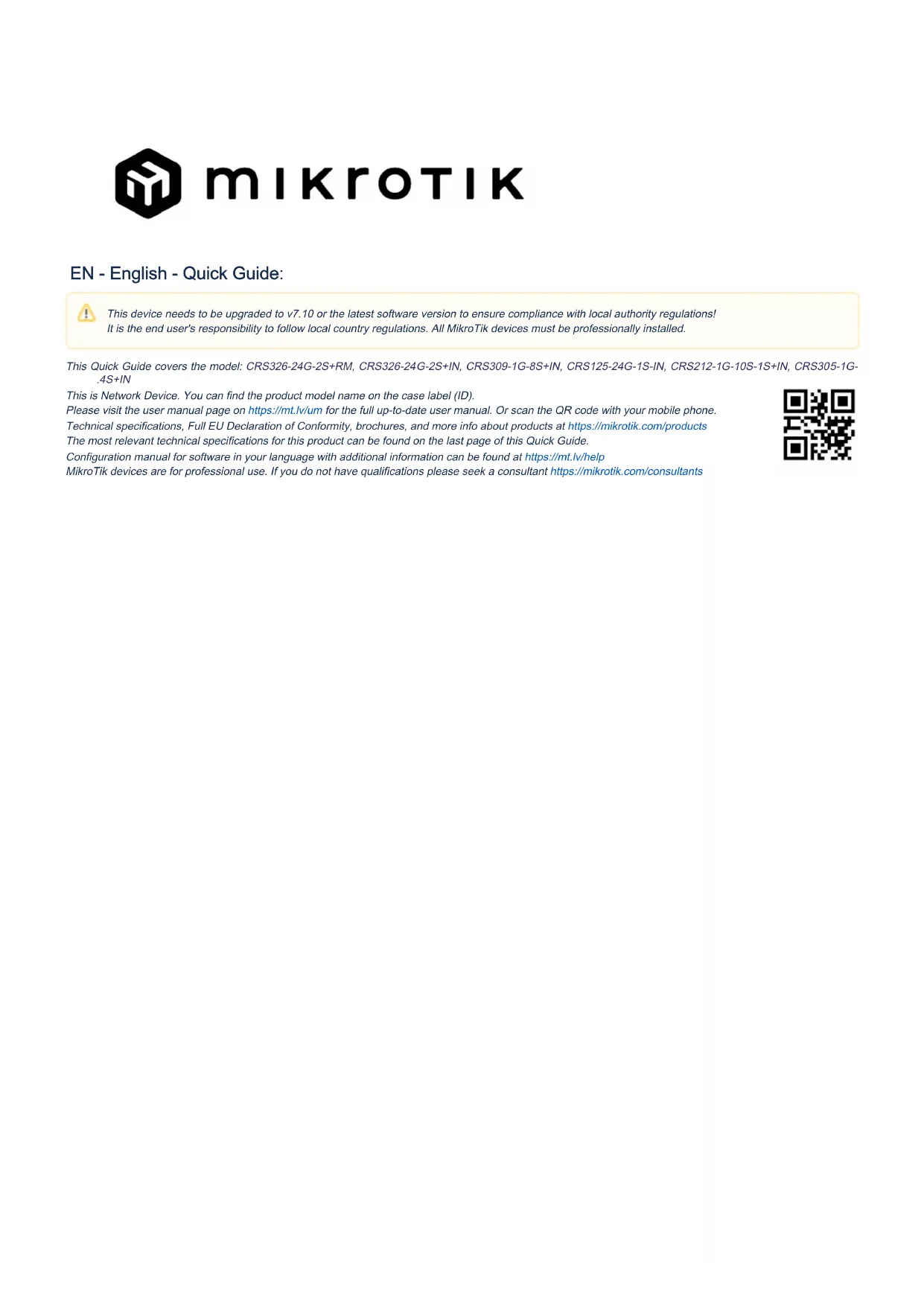 Retrouvez gratuitement la notice de l'appareil CRS309-1G-8S+IN Mikrotik au format PDF.