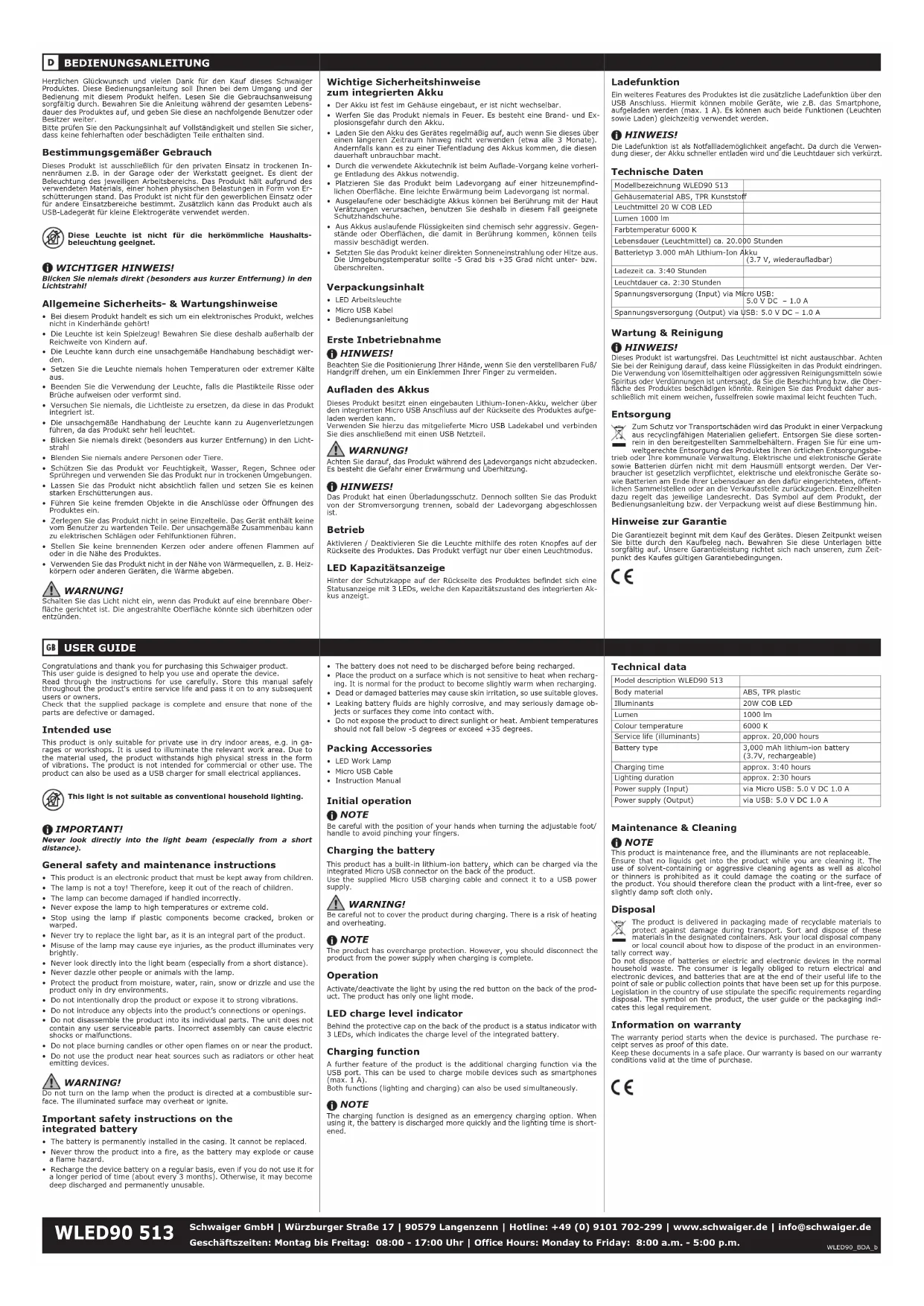 WLED90 513 - Éclairage Schwaiger - Notice d'utilisation et mode d'emploi gratuit
