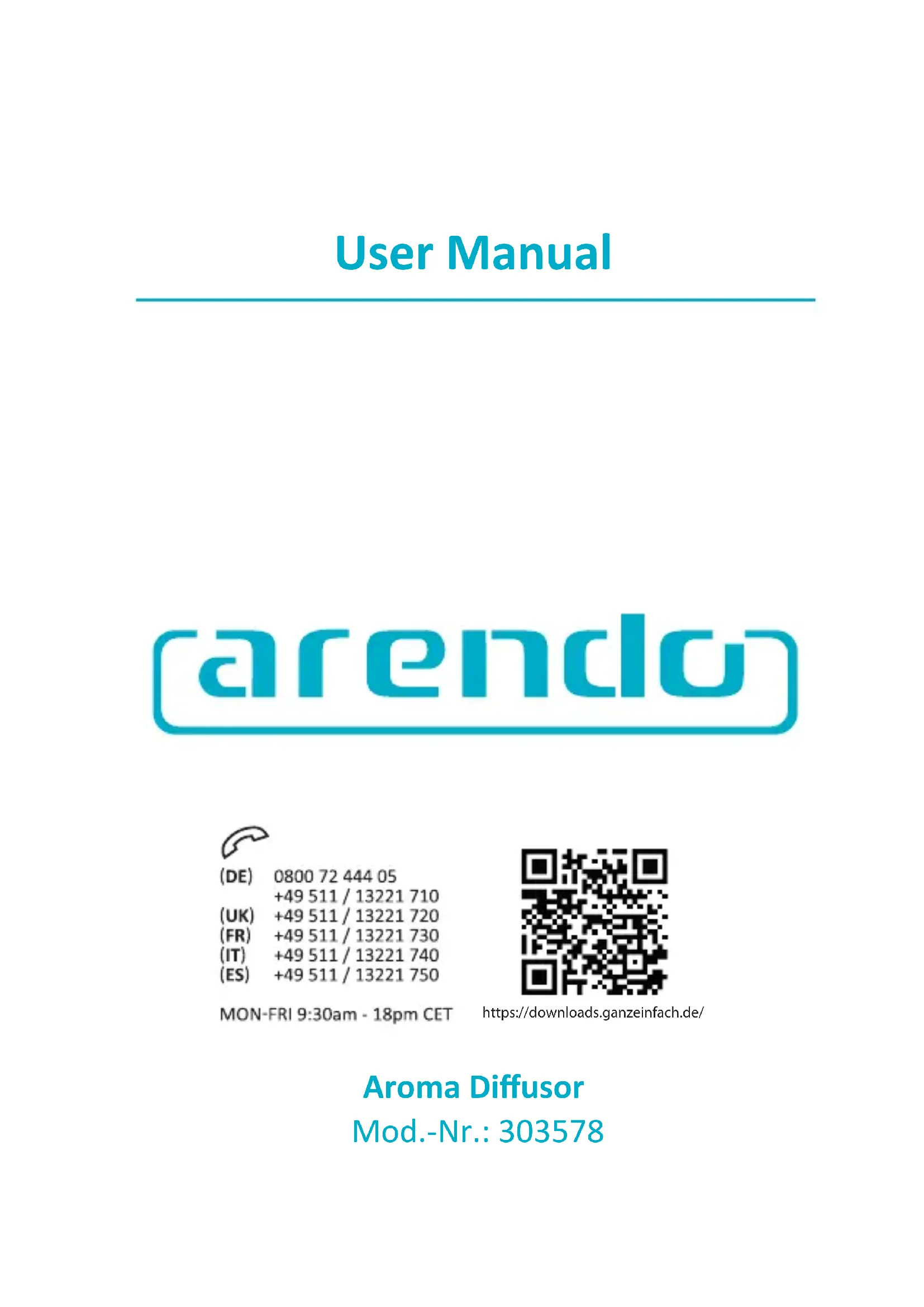 303578 - Diffuseur d'arôme Arendo - Notice d'utilisation et mode d'emploi gratuit