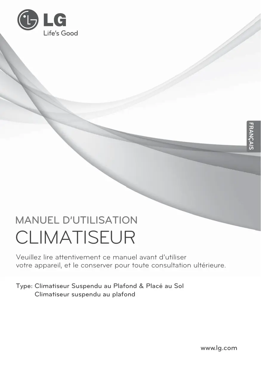 FRANÇAIS MANUEL D’UTILISATION CLIMATISEUR Veuillez lire attentivement ce manuel avant d’utiliser votre appareil, et le conserver pour toute consultation ultérieure. Type: Climatiseur Suspendu au Plafond & Placé au Sol Climatiseur suspendu au plafond