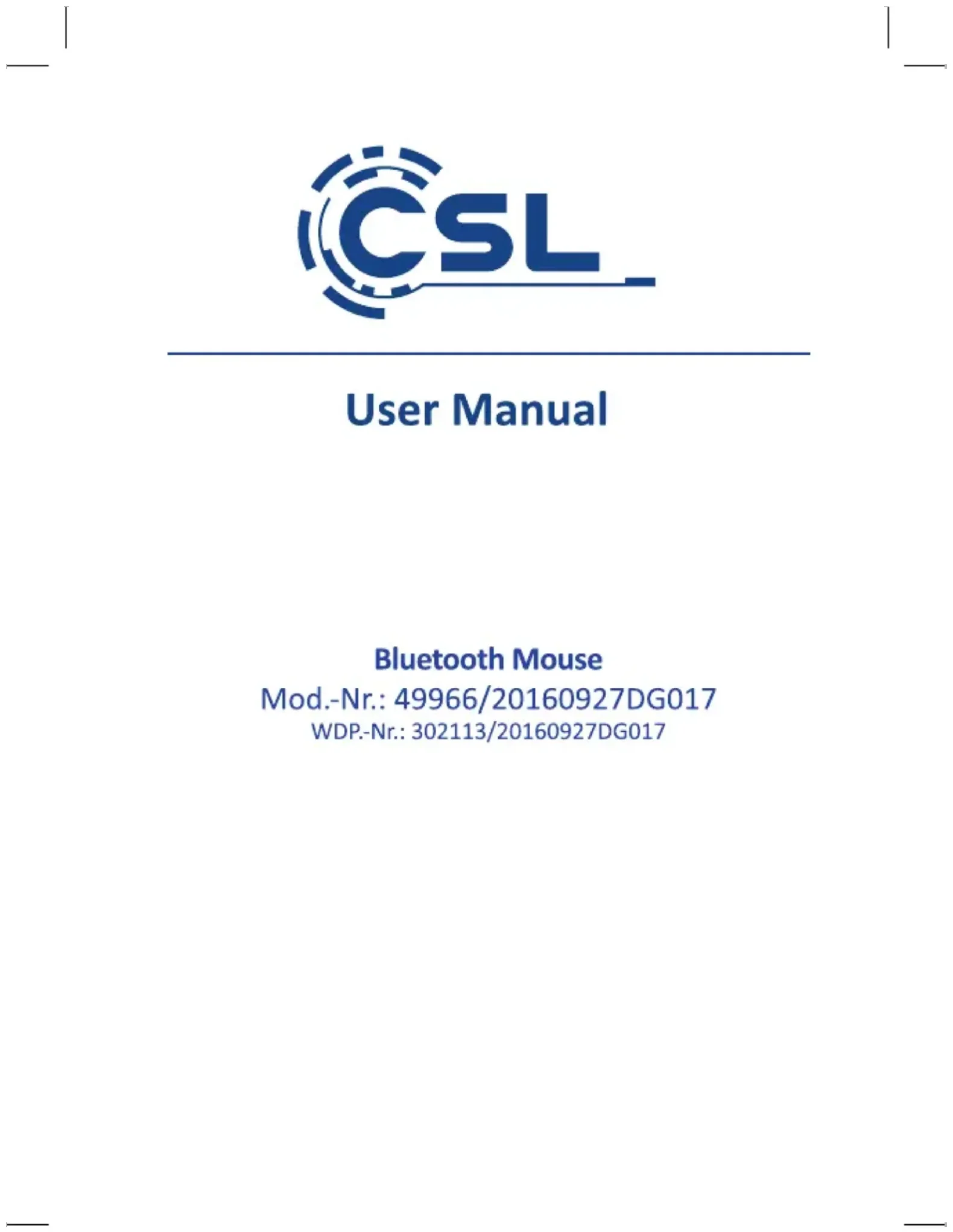Téléchargez la notice de votre Souris au format PDF gratuitement ! Retrouvez votre notice 302113 - CSL et reprennez votre appareil électronique en main. Sur cette page sont publiés tous les documents nécessaires à l'utilisation de votre appareil 302113 de la marque CSL.