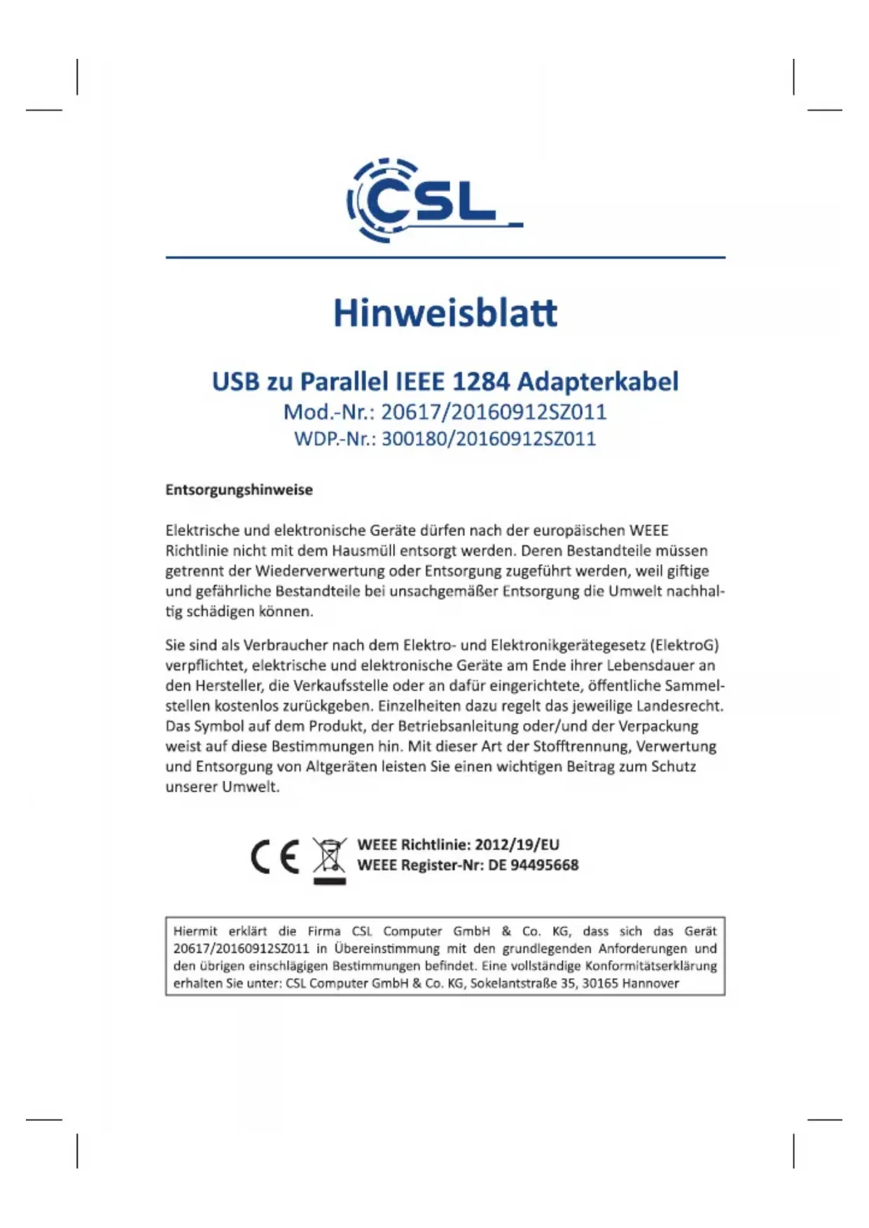 Retrouvez gratuitement la notice de l'appareil 300180 CSL au format PDF.