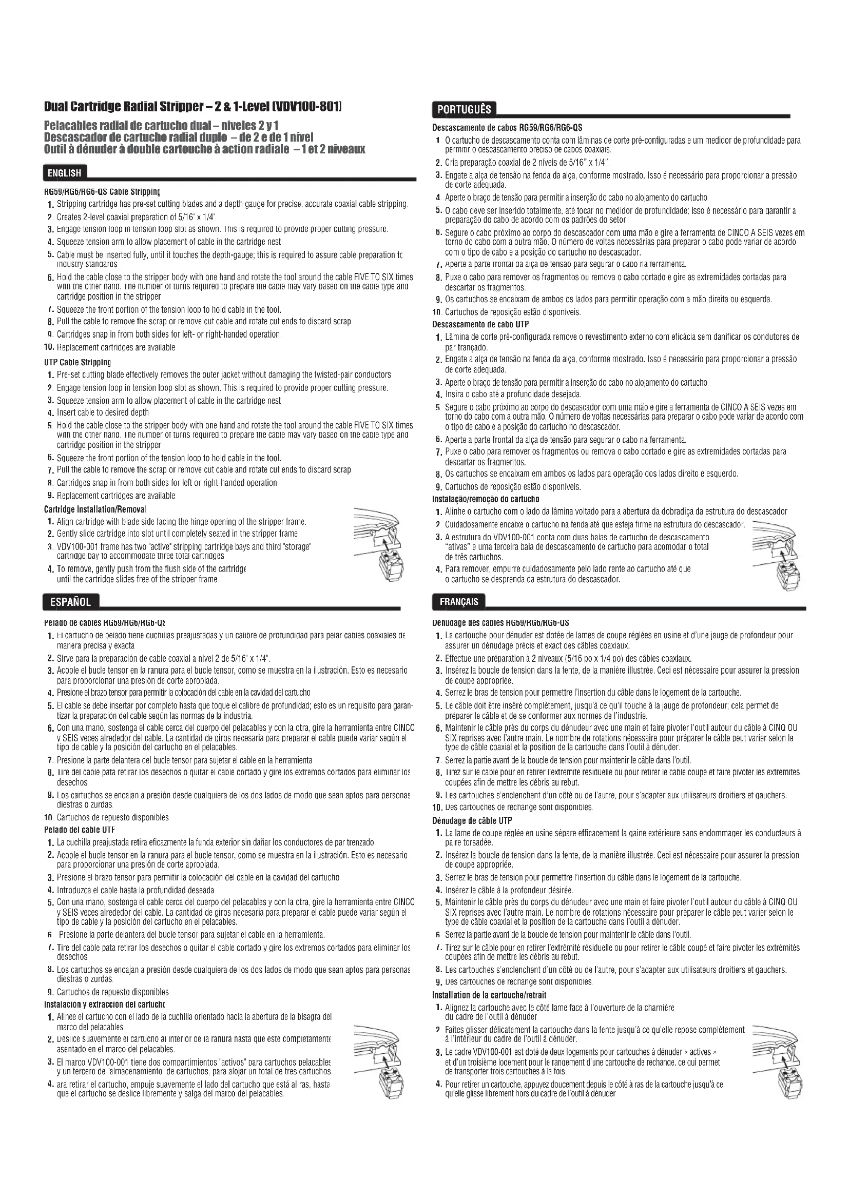 Des cartouches de rechange sont disponibles. Dénudage de câble UTP