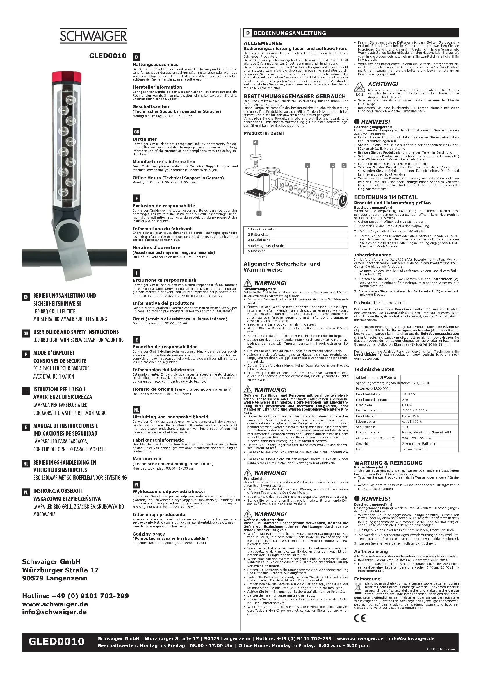 GLED0010 - Lampe Schwaiger - Notice d'utilisation et mode d'emploi gratuit
