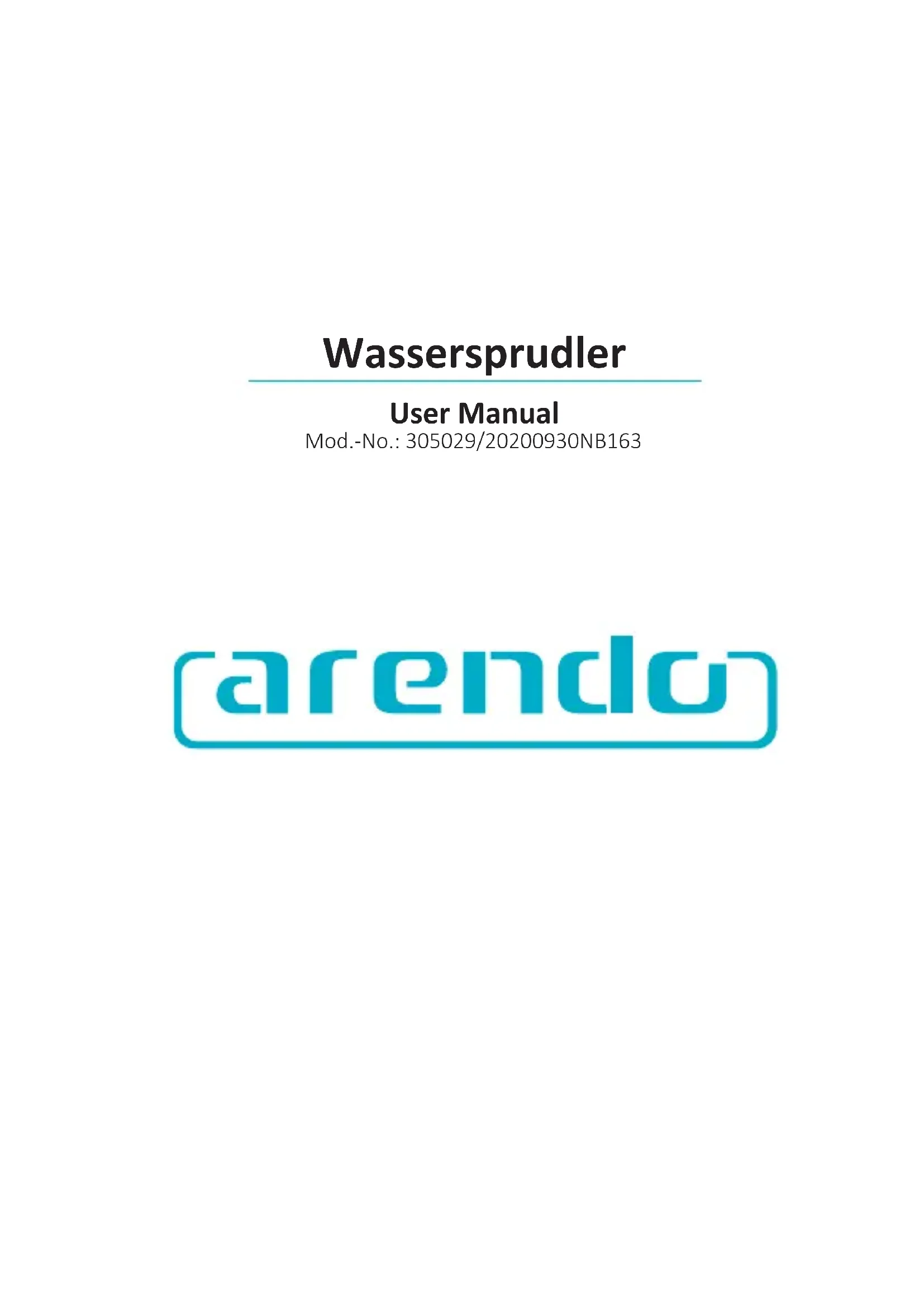 - Si vous ulisez l’appareil dans une posion diérente de la posion ver- cale debout, des quantés de CO2 dangereuses risquent de s’accumuler dans la bouteille d’eau.35Français Nous vous remercions d'avoir choisi un produit d'Arendo. Pour que vous puissiez proter longtemps de l'appareil acquis, veuillez lire aenvement le mode d’em- ploi suivant. Avant la mise en service du produit livré, vériez s'il est complet, sans défauts et intact.