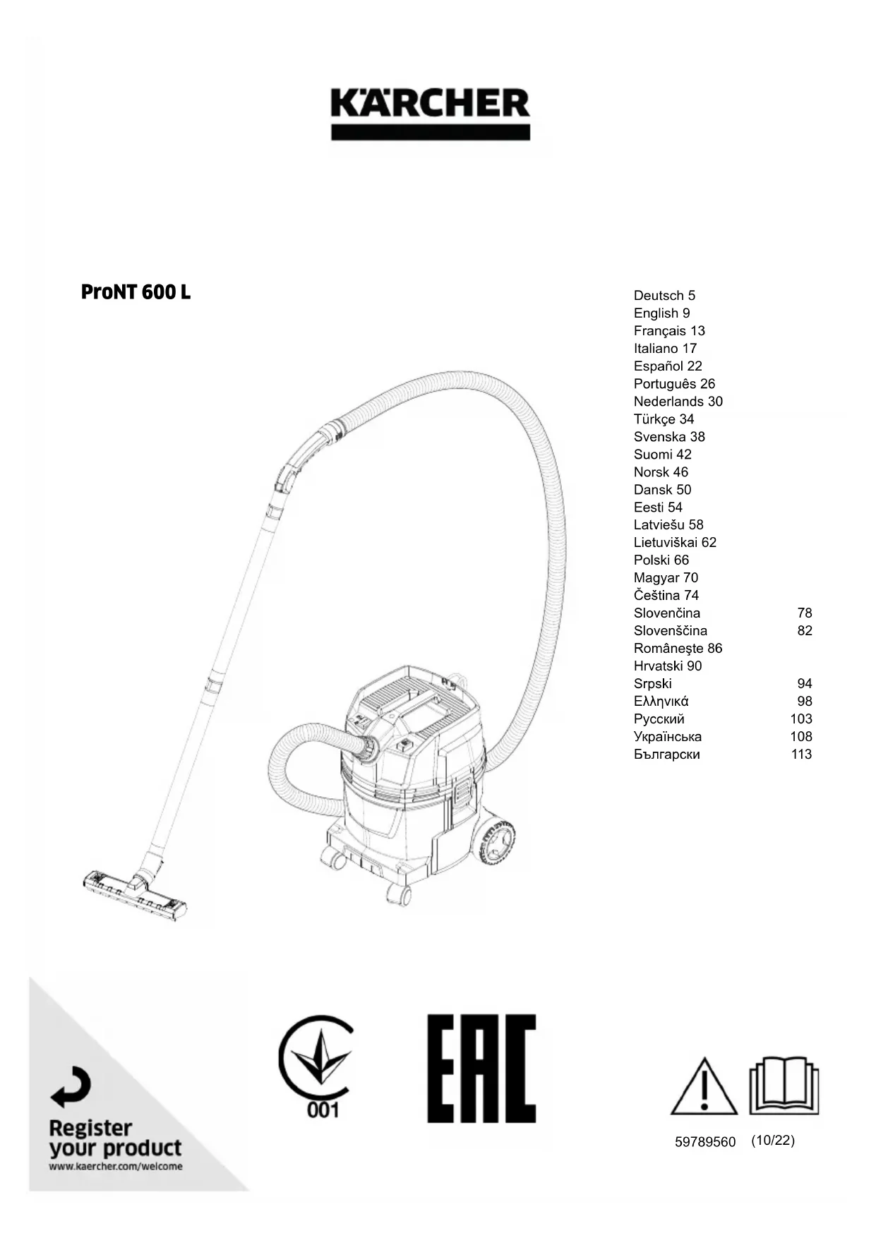 Retrouvez gratuitement la notice de l'appareil ProNT 600 L Kärcher au format PDF.