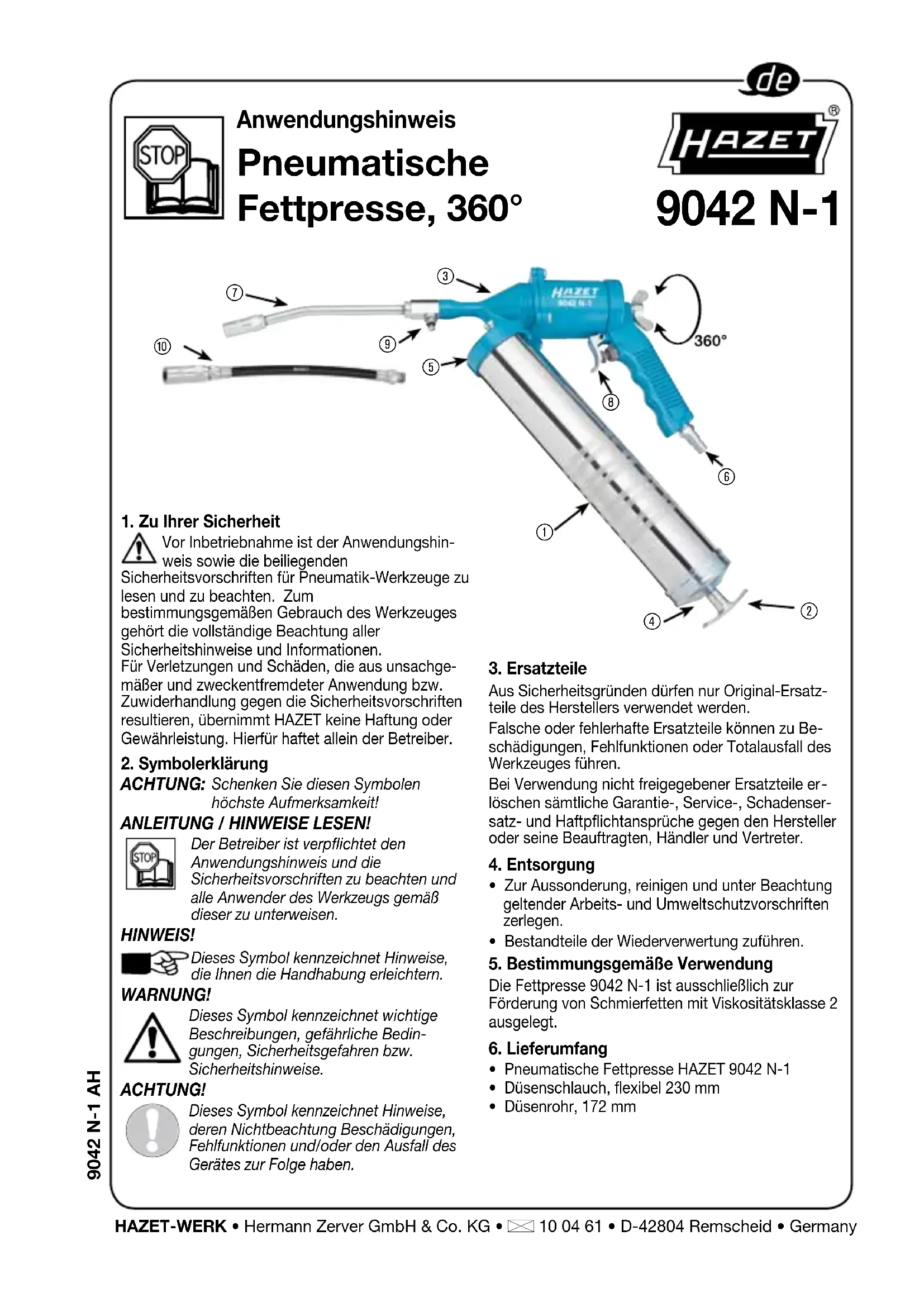 Retrouvez gratuitement la notice de l'appareil 9042N-1 Hazet au format PDF.
