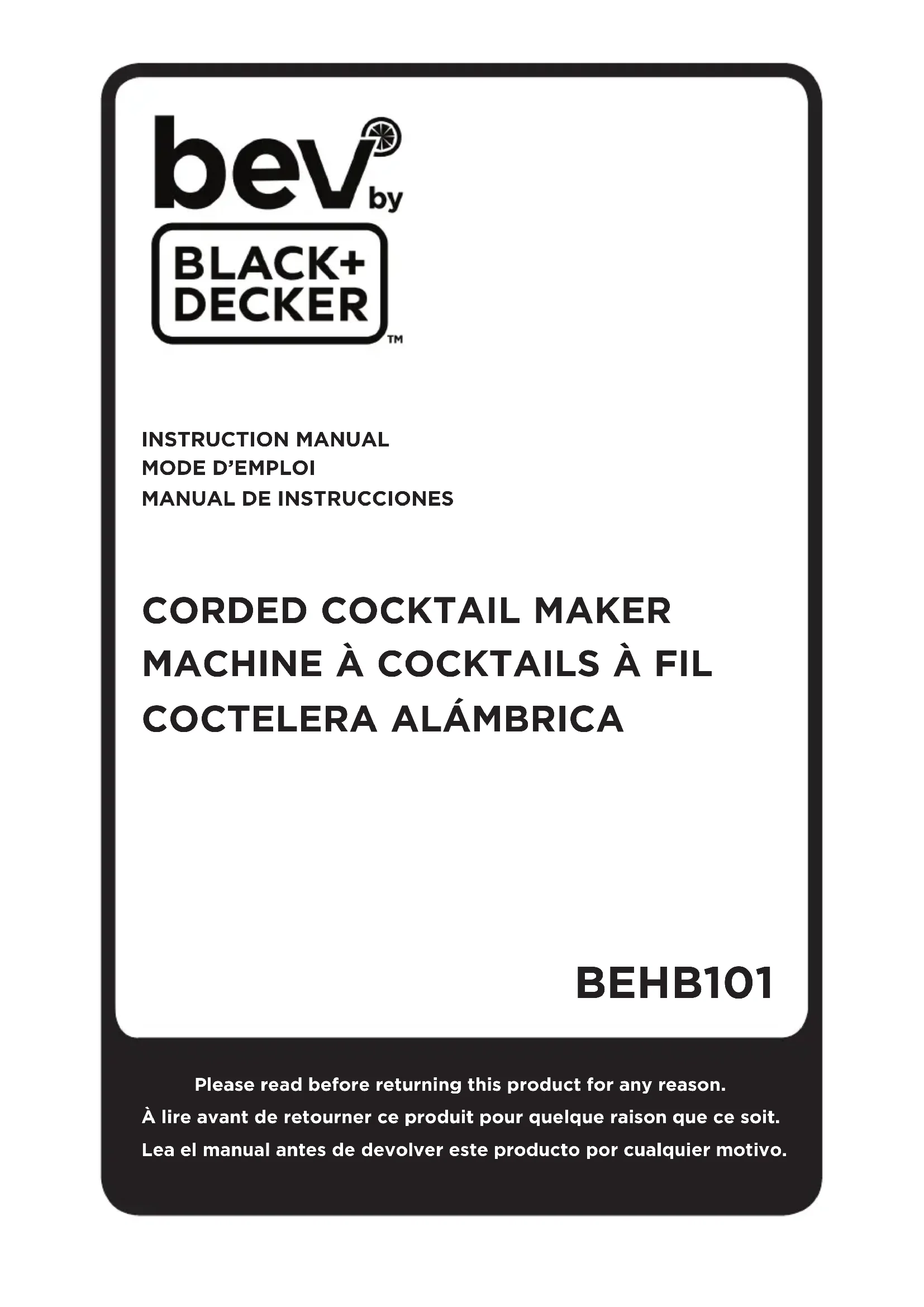 Retrouvez gratuitement la notice de l'appareil BEHB101 BLACK & DECKER au format PDF.