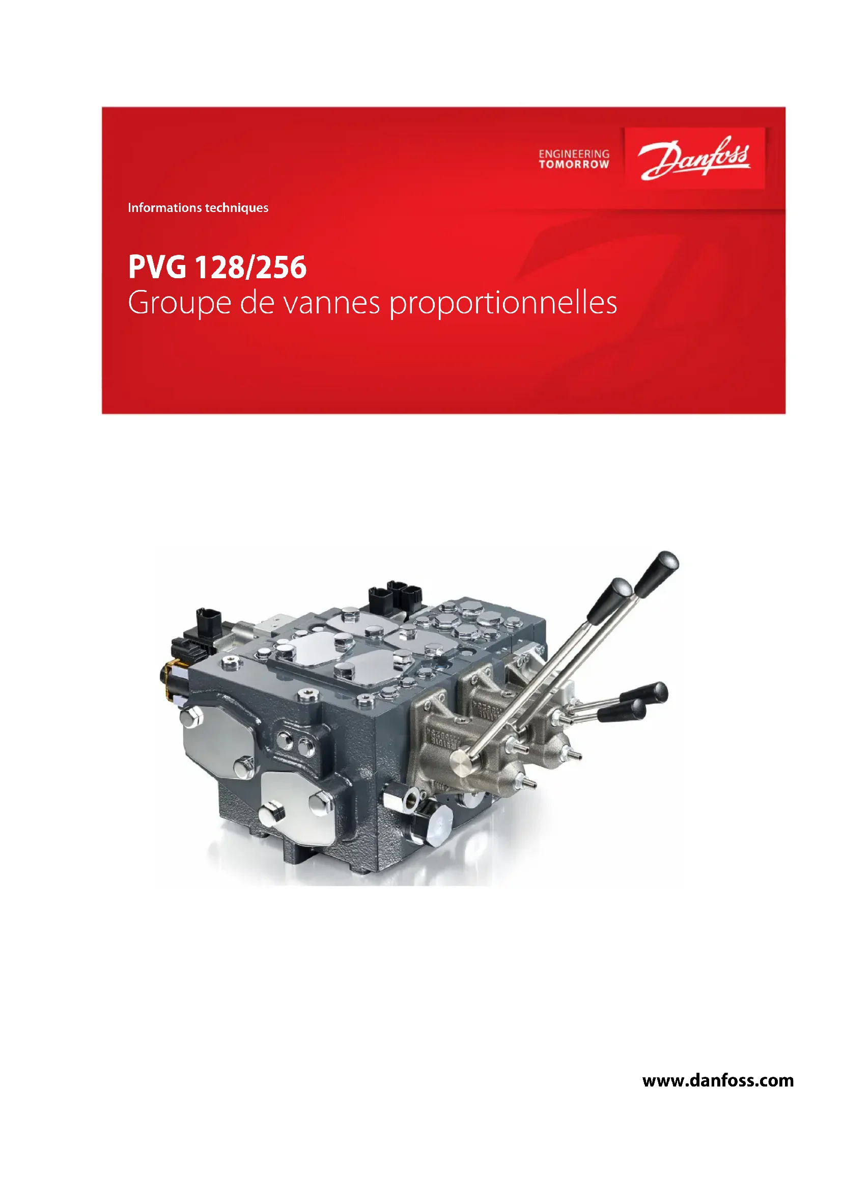 Informations techniques PVG 128/256 Groupe de vannes proportionnelles www.danfoss.comHistorique des révisions Tableau des révisions Date Modification Rév. Septembre 2018 Rubrique de sécurité ajoutée. 0406 Août 2018 Modifications de mise en pages, modifications mineures 0405 Juin 2018 Mise à jour du tableau de dimensions page 90. 0404 Mars 2018 Modifications mineures 0403 Janvier 2018 Correction des références page 54 0402 Octobre 2017 Mise à jour des noms de ports sur les schémas 0401 Juillet 2017 Mise à jour des spécifications et dimensions 0301 Mars 2017 Correction de l'équation PVAS 0203 Mars 2017 Mise à jour des tableaux PVAS 0202 Janvier 2017 Modification des données techniques des PVEO et PVEH 0201 Novembre 2016 Première édition 0101 Informations techniques Informations techniques PVG 128/256 2 |