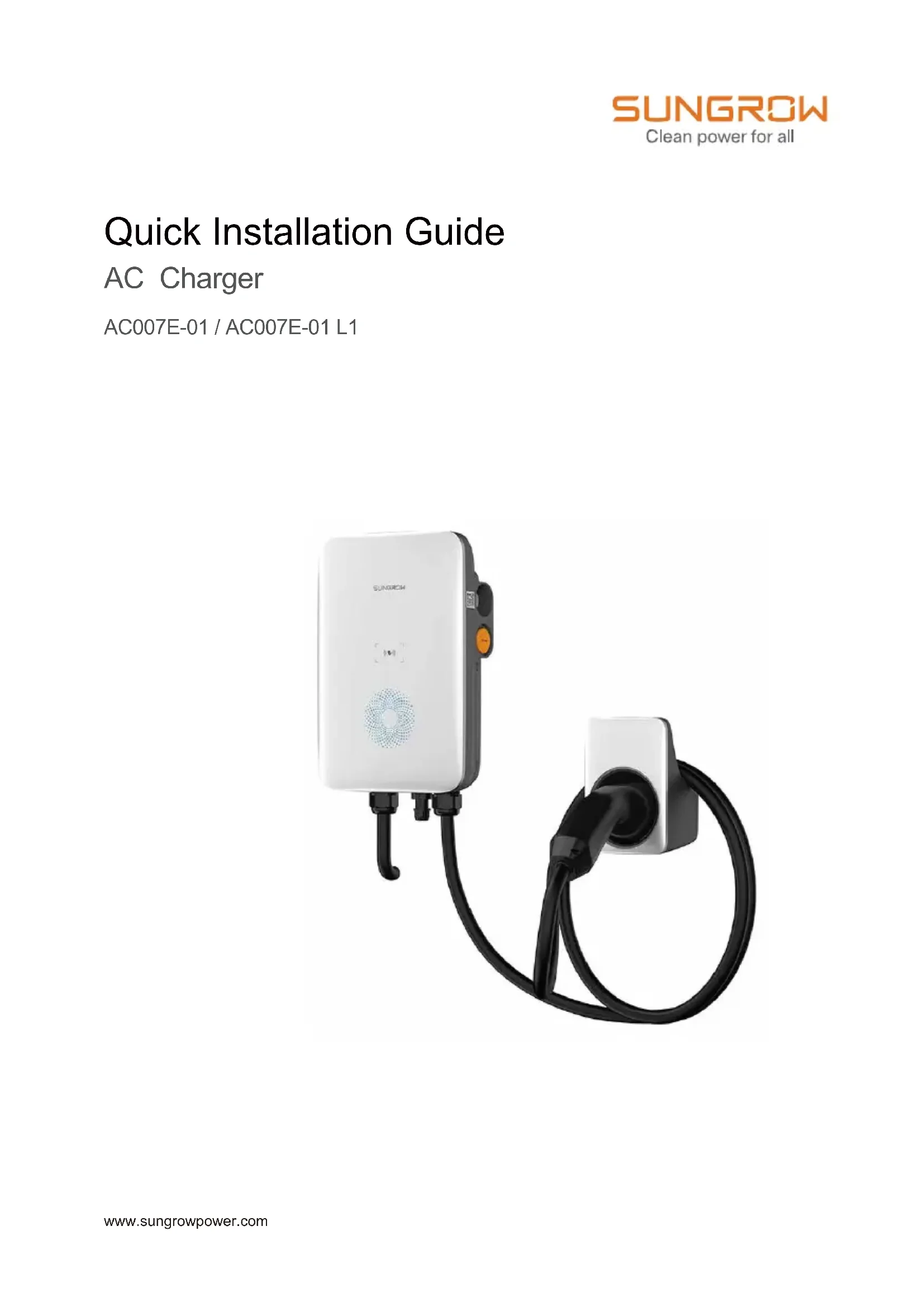 Retrouvez gratuitement la notice de l'appareil AC007E-01 Sungrow au format PDF.