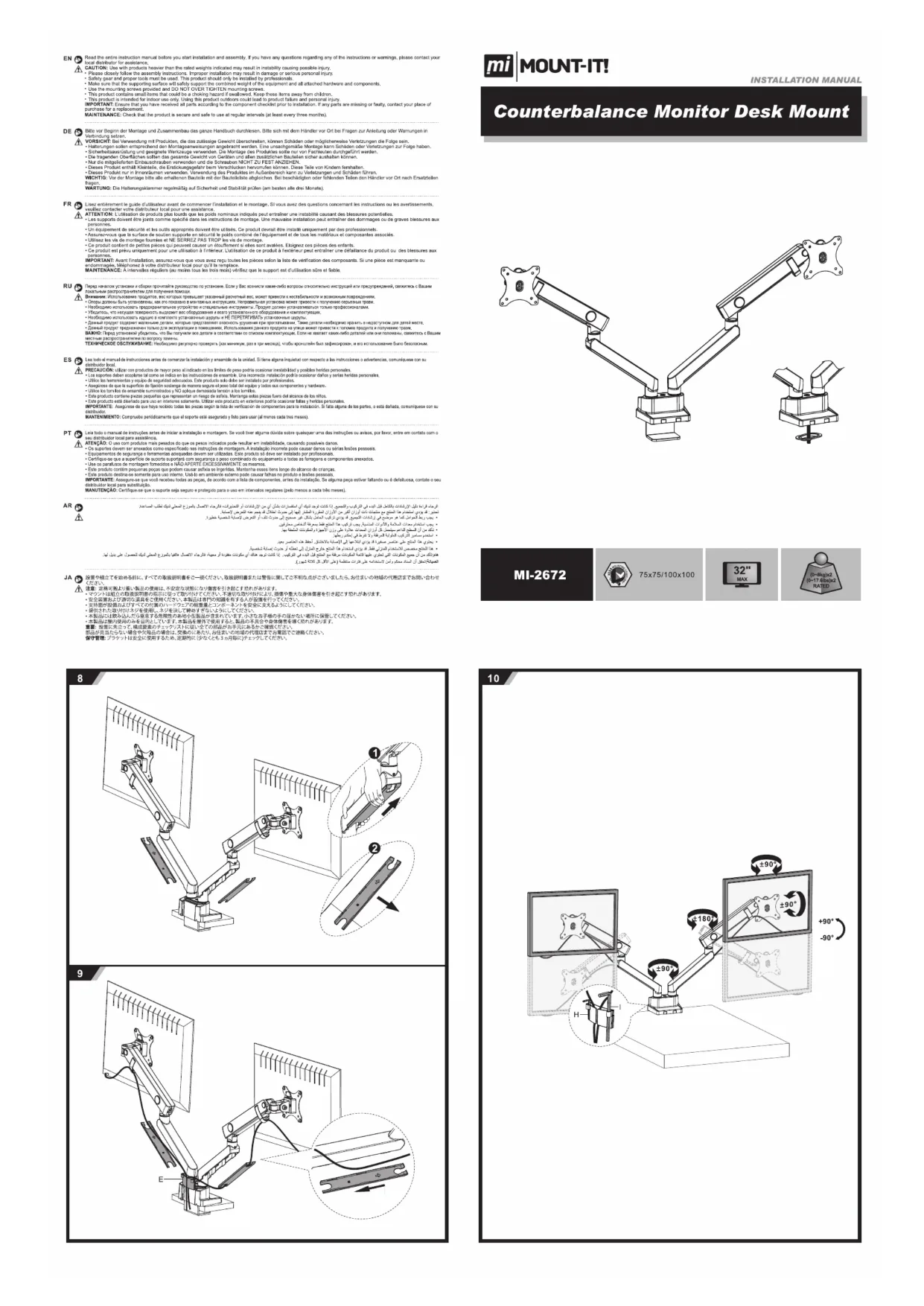 MI-2672 - Support écran plat Mount-It! - Notice d'utilisation et mode d'emploi gratuit