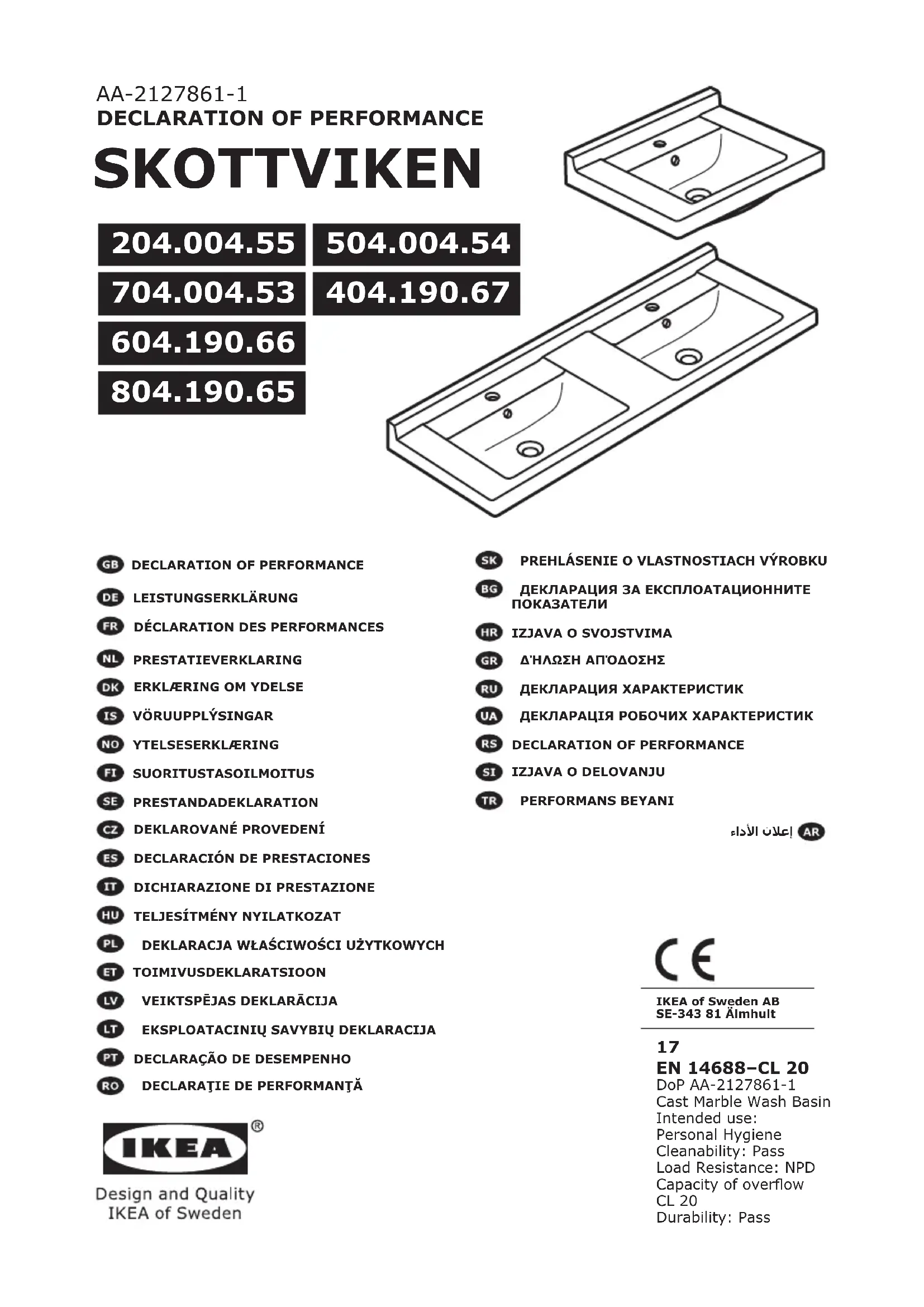 SKOTTVIKEN 204.004.55 - Lavabo IKEA - Notice d'utilisation et mode d'emploi gratuit