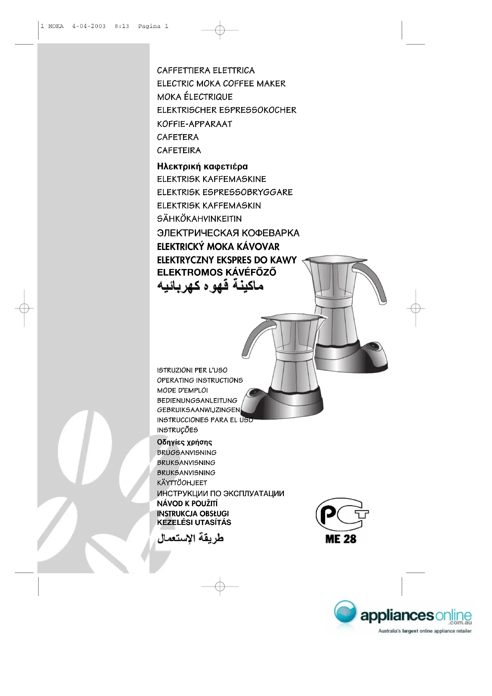 - Pour nettoyer votre cafetière, évitez les sol- vants et les détergents abrasifs. Lavez-la avec une éponge, sans jeter de l’eau sur les elemts electriques. 1 MOKA 4-04-2003 8:13 Pagina 1112