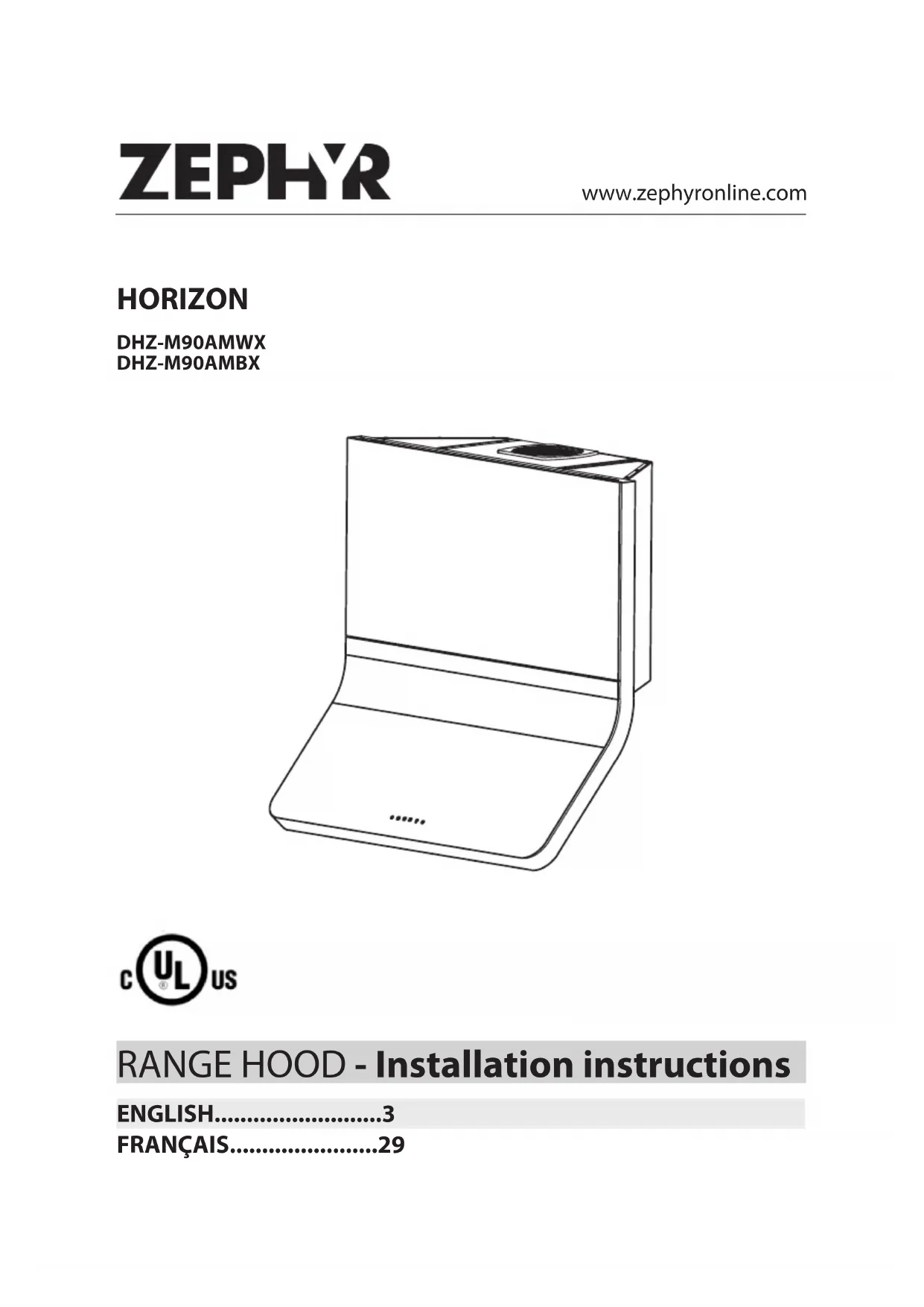 DHZ-M90AMWX - Hotte Zephyr - Notice d'utilisation et mode d'emploi gratuit