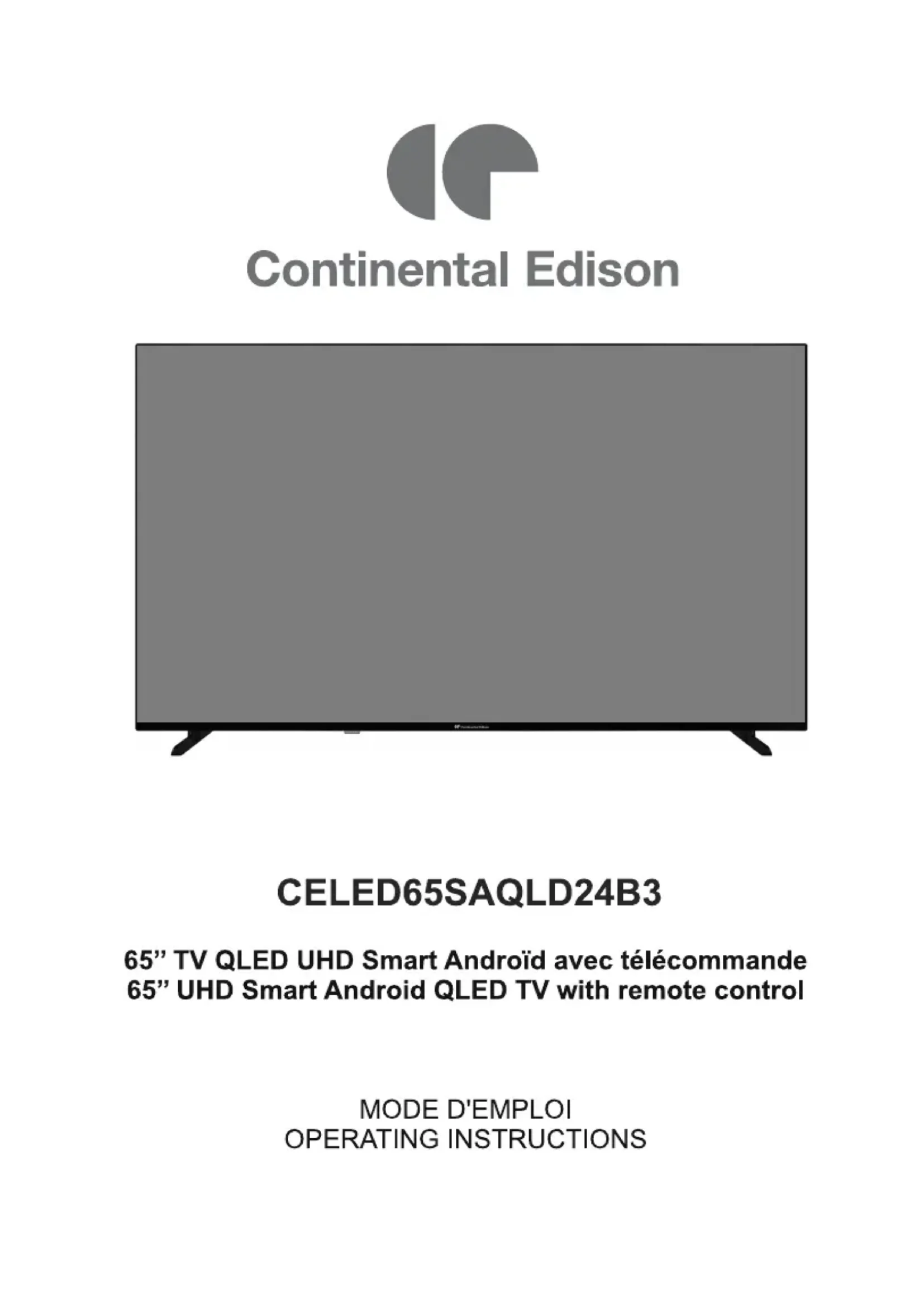 CELED65SAQLD24B3 - Téléviseur CONTINENTAL EDISON - Notice d'utilisation et mode d'emploi gratuit