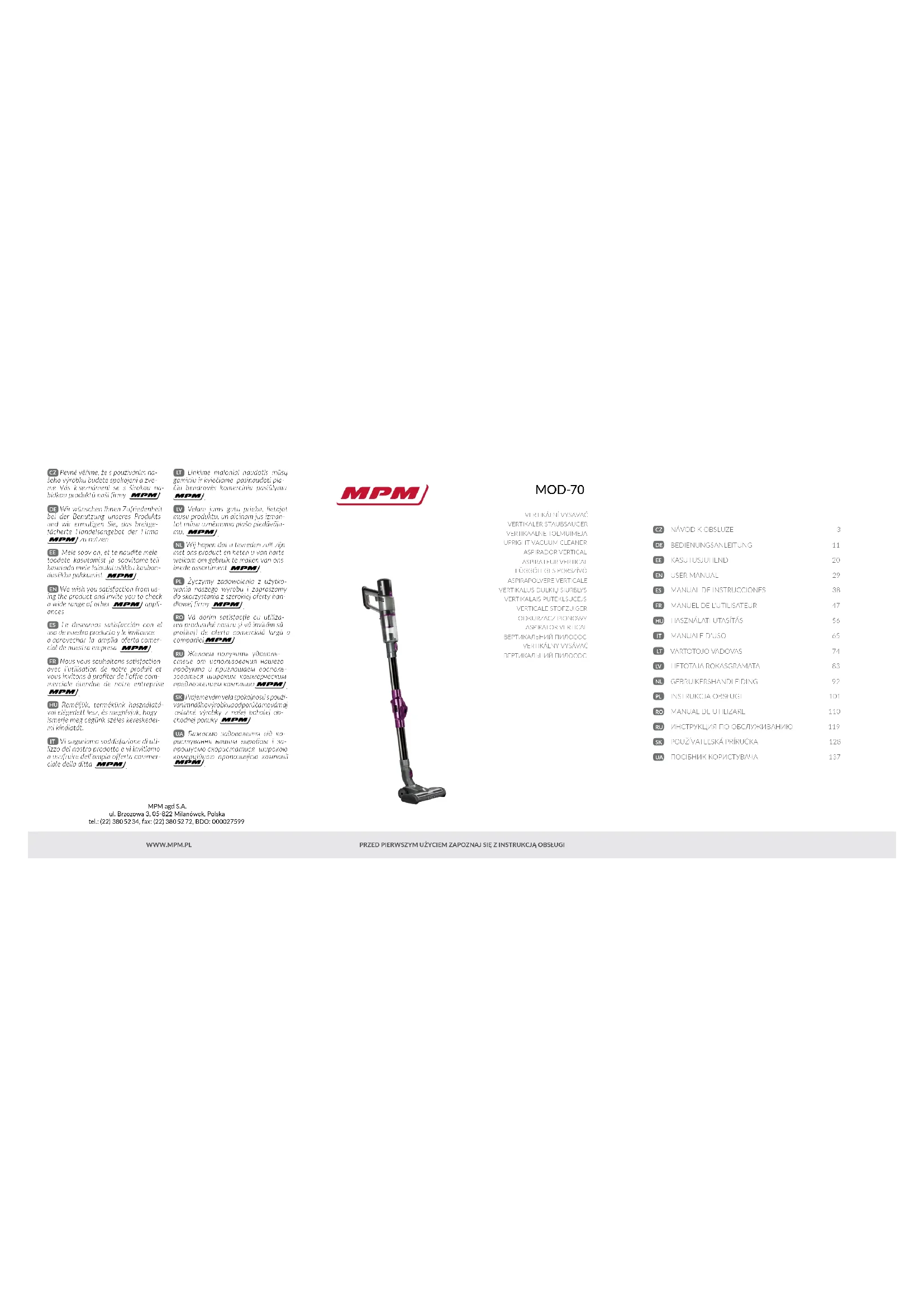 MOD-70 - Aspirateur MPM - Notice d'utilisation et mode d'emploi gratuit