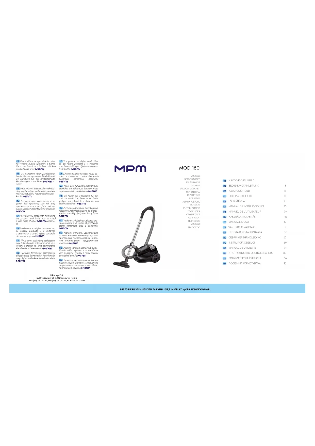 MOD-180 - Aspirateur MPM - Notice d'utilisation et mode d'emploi gratuit