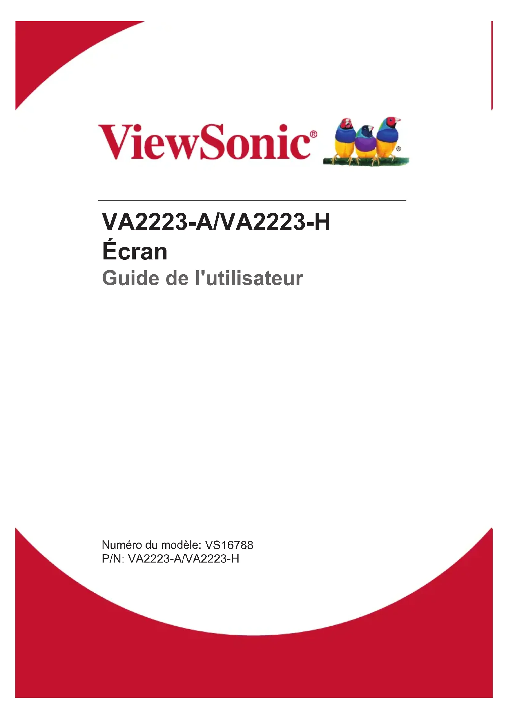 VA2223-A/VA2223-H Écran Guide de l'utilisateur Numéro du modèle: VS16788 P/N: VA2223-A/VA2223-HMerci d’avoir choisi ViewSonic Avec plus de 30 années d’expérience en tant que fournisseur mondial majeur en solutions visuelles, ViewSonic se consacre à dépasser les attentes du monde pour les évolutions technologiques, l’innovation et la simplicité. Chez ViewSonic, nous croyons que nos produits ont le potentiel d’avoir un impact positif sur le monde, et sommes confiants que le produit ViewSonic que vous avez choisi vous sera utile. Encore une fois, merci d’avoir choisi ViewSonic !iii Table des Matičres