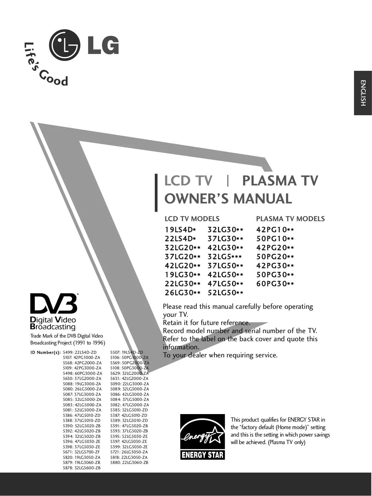5250 - Téléviseur LG - Notice d'utilisation et mode d'emploi gratuit