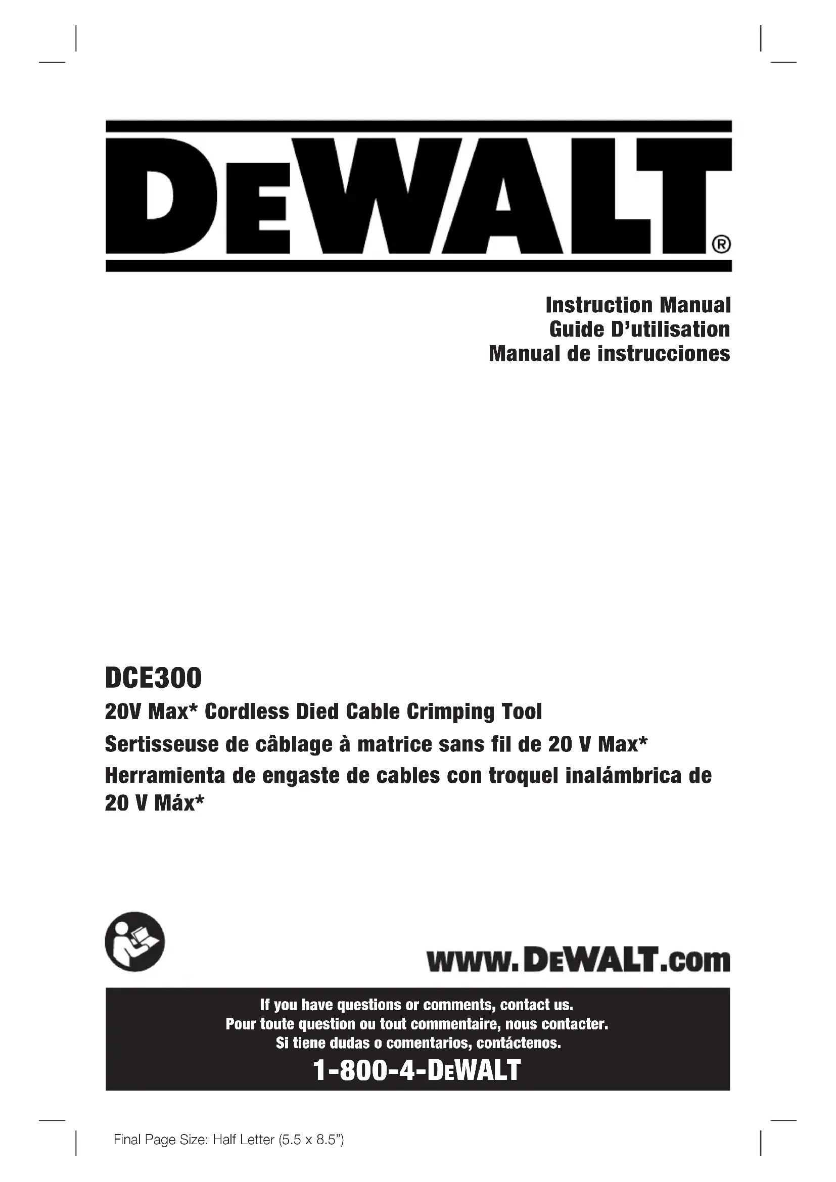 DCE300 - Outil de sertissage DEWALT - Notice d'utilisation et mode d'emploi gratuit