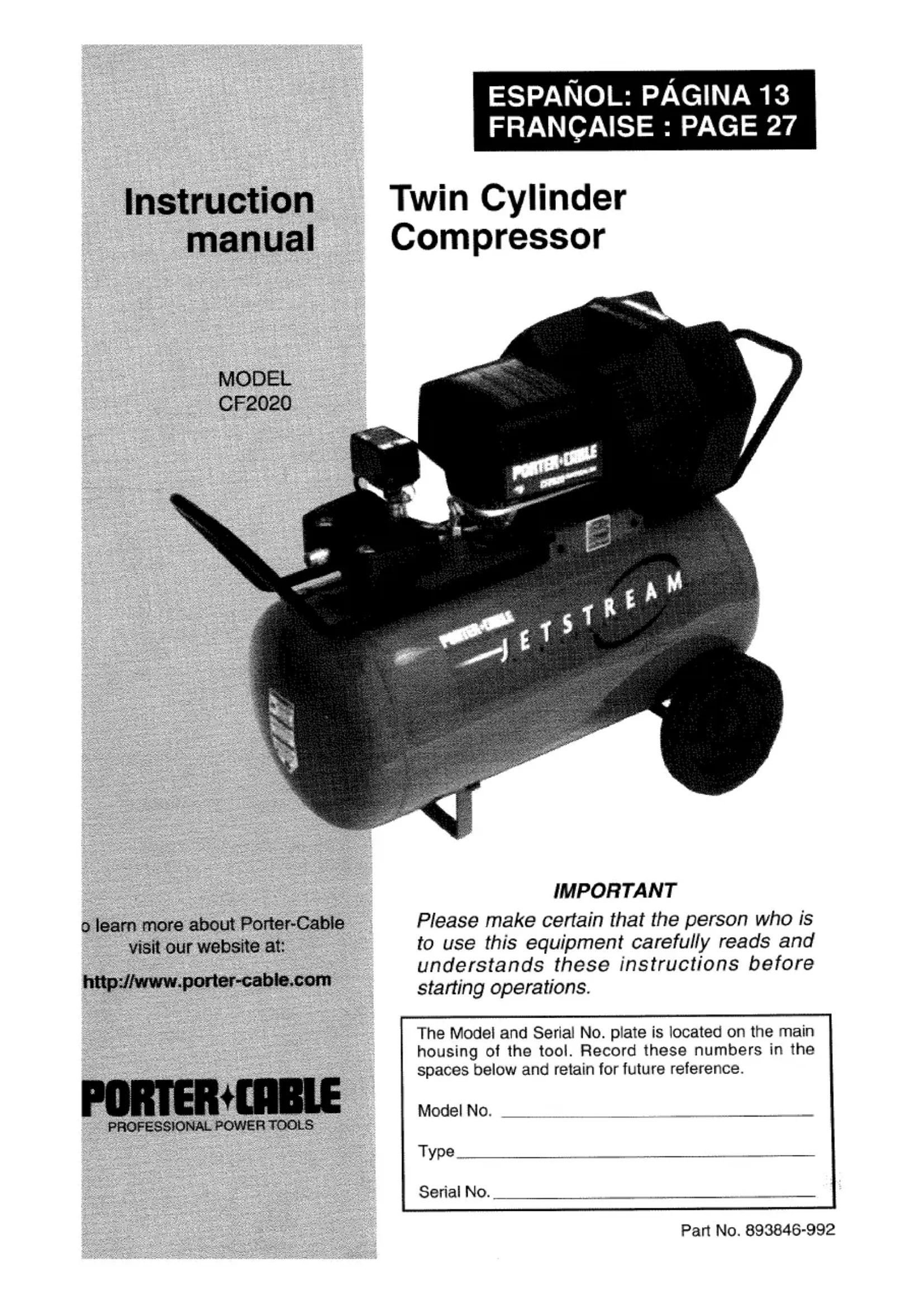 Retrouvez gratuitement la notice de l'appareil CF2020 Porter-Cable au format PDF.