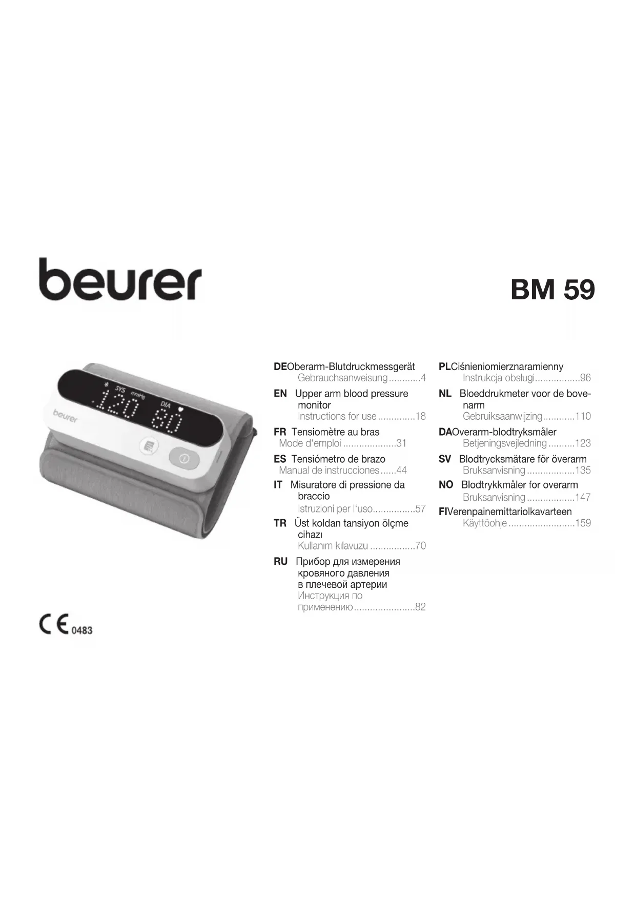 BM 59 - Tensiomètre BEURER - Notice d'utilisation et mode d'emploi gratuit
