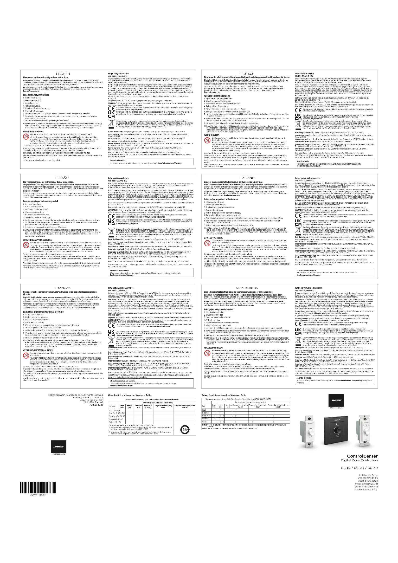 Retrouvez gratuitement la notice de l'appareil ControlCenter CC-1D BOSE au format PDF.