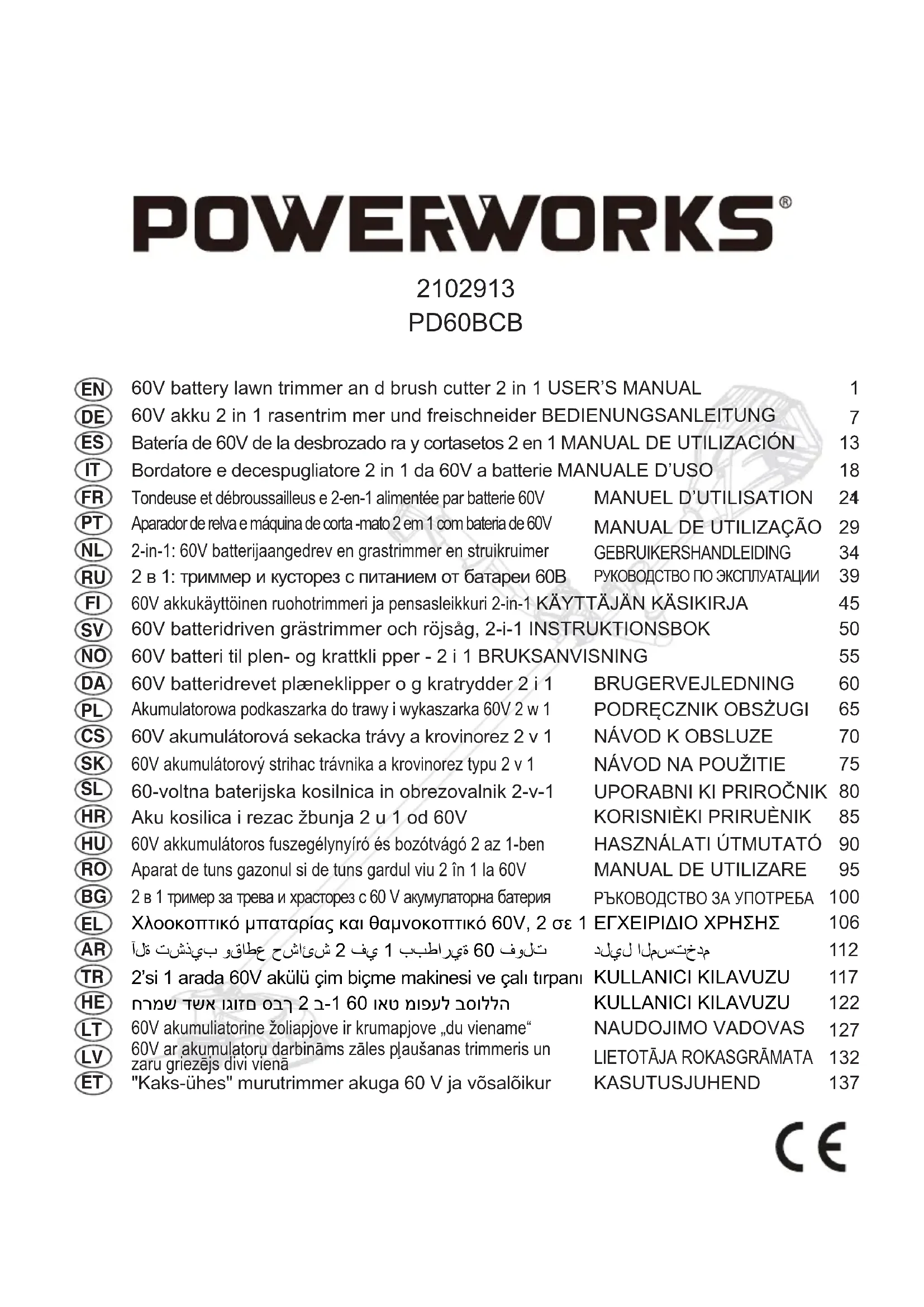 PD60BCB - Coupe-herbe Powerworks - Notice d'utilisation et mode d'emploi gratuit